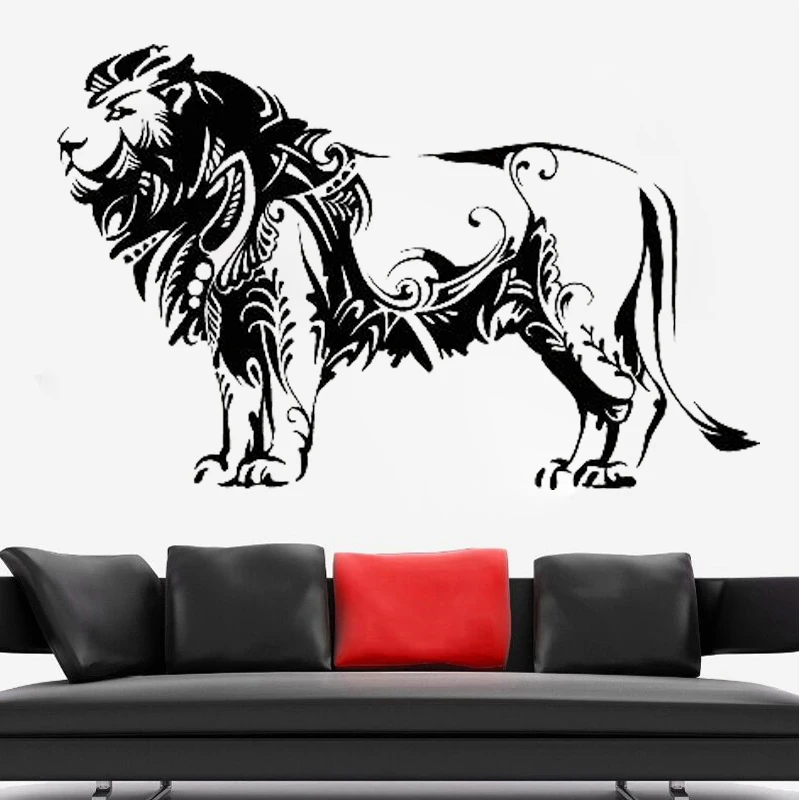 Наклейка на стену Лев Абстрактный Цветочный дикий животный наклейка красивый Племенной Хищник наклейки съемные аксессуары для украшения дома