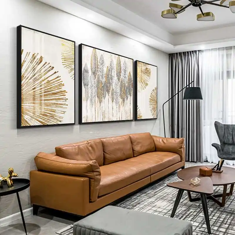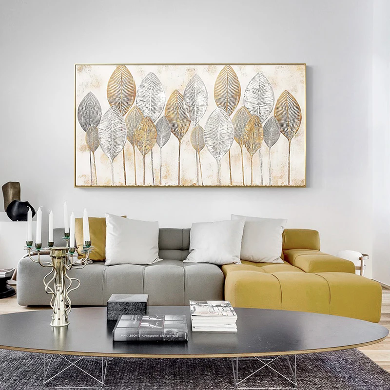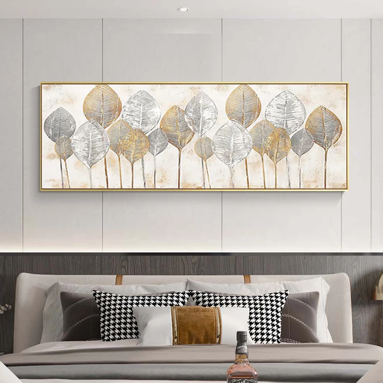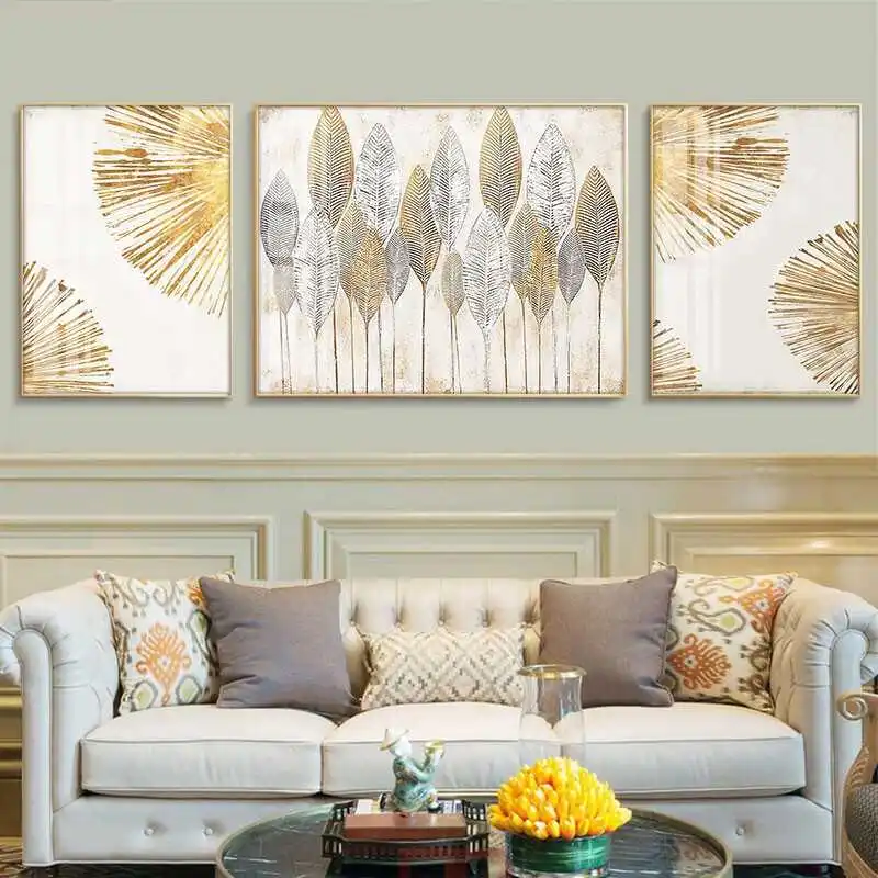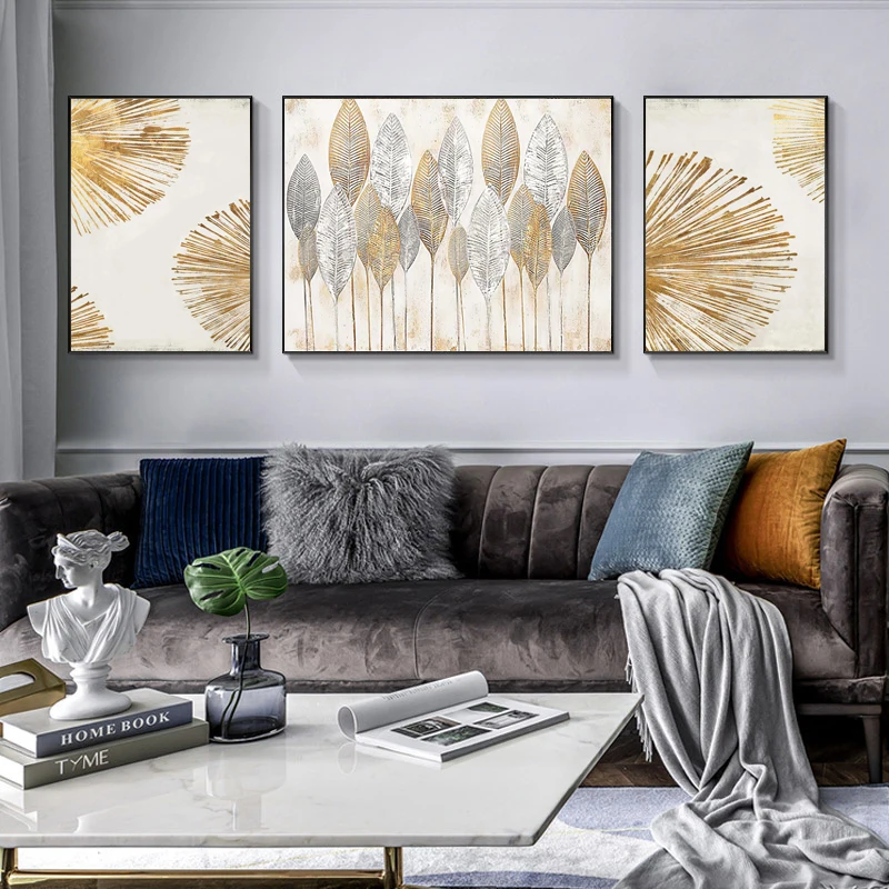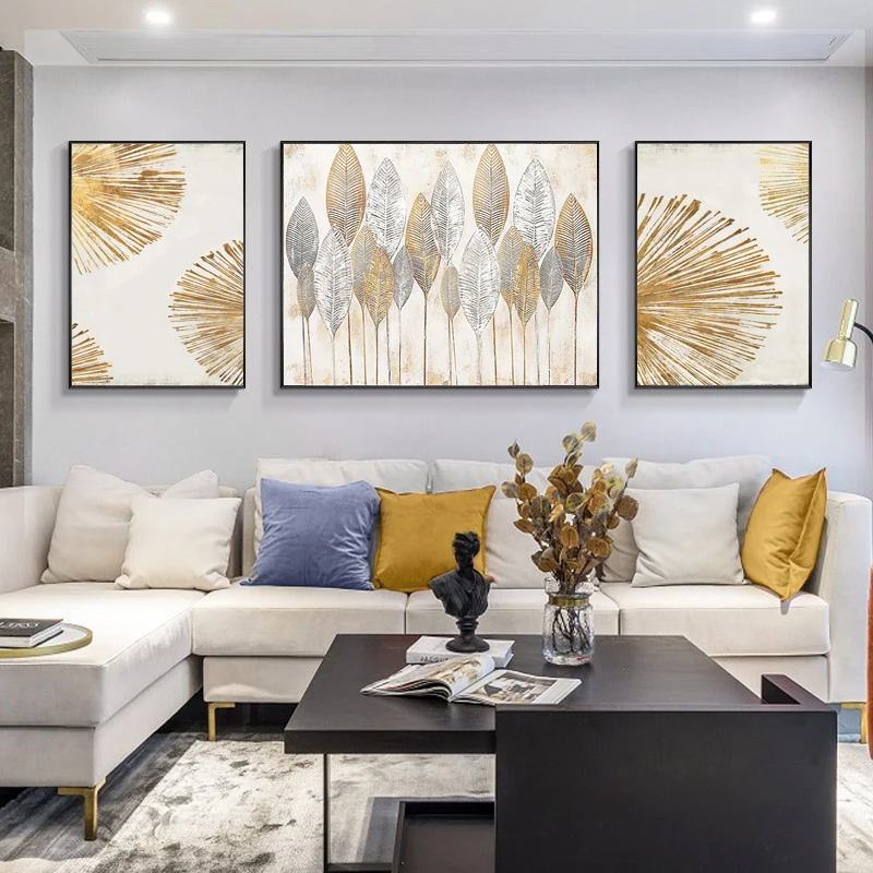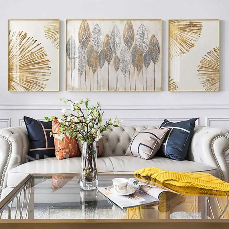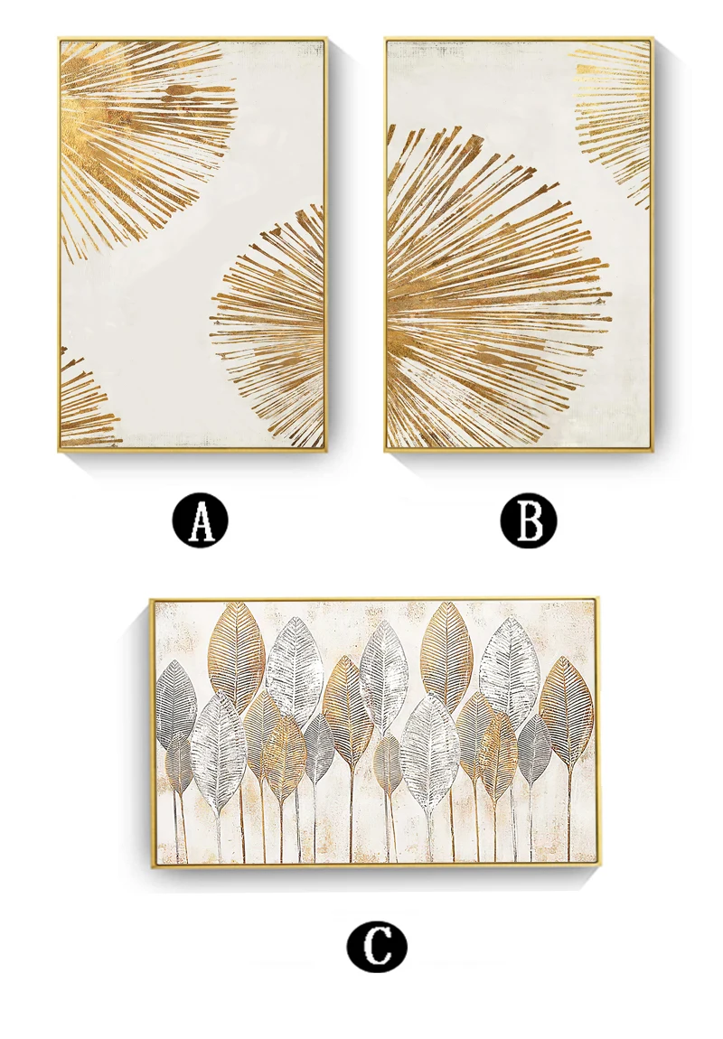 Скандинавский декор, холст с золотыми листьями, абстрактная живопис...