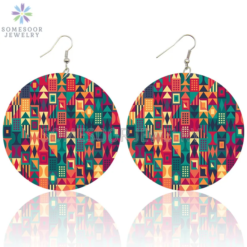Деревянные женские серьги SOMESOOR, в африканском этническом стиле, богемные, с двусторонним принтом, с тканевым узором