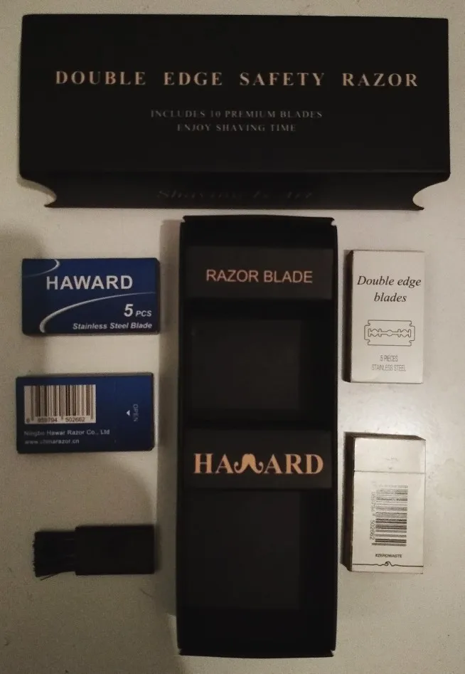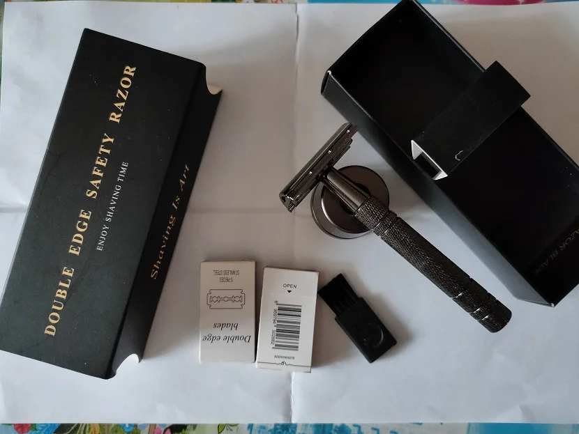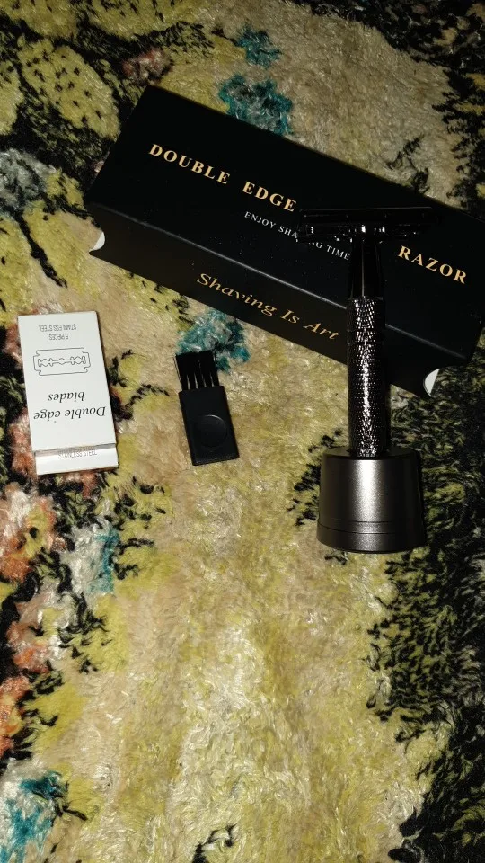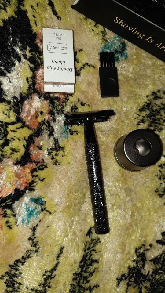 Бритва очень красиво упакована и ощущается как хорошее качество, также поставляется с некоторыми лезвиями и маленькой чистящей щеткой. Я также заказал подставку, которая хорошо работает и имеет нескользящее кольцо на нижней части. Очень доволен товаром и продавцом в целом.