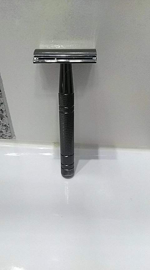 Персоналу магазина огромное спасибо - здесь работают порядочные и честные люди. А вот бритвенный станок не очень... Теперь по порядку: станок пришёл как на фото - чёрный, красивый, блестящий. Дополнительно продавец положил 20 штук лезвий, а не 10 как в описании. Чтобы не повредить лакированное покрытие я промыл станок тёплой водой (40-50 градусов Цельсия) и русским хозяйственным мылом 72%. После этого покрытие как-то поблекло и после нескольких дней использования станок выглядел таким вот образом. Написал продавцу, он ответил, что продано больше сотни различного рода бритв и я лишь второй человек кто жалуется на качество покрытия. Данное покрытие не лак и не краска, а гальваника. Однако он совершенно бесплатно выслал мне другой экземпляр, а заодно пообещал разобраться в проблеме если будет множество жалоб на качество покрытия. Бриться этим станком можно - я использовал лезвие Восход и мне понравилось, но без защитного покрытия станок подвержен воздействию коррозии.
