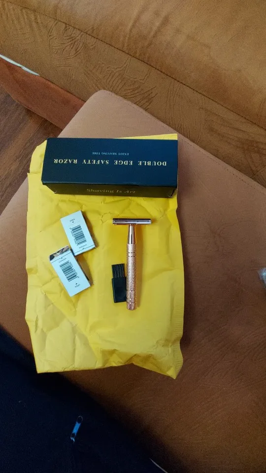 Пришло вовремя, упаковано надежно. В Киев через Новую Почту. Сама бритва без дефектов. Ручка легкая и полая. В целом по весу и ощущениям как дешевая алюминиевая из Ашана за $3. Изделие не рекомендую. Продавец супер.