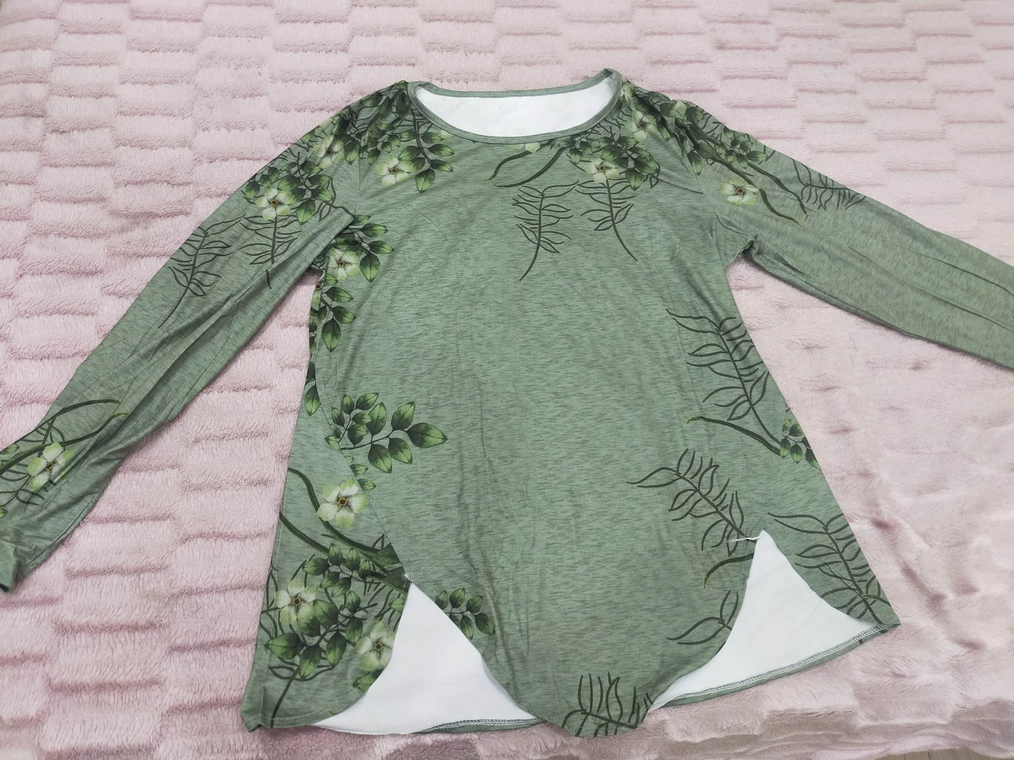 Женская Осенняя туника с длинным рукавом, топ с цветочным принтом, блузка с асимметричным подолом Характеристики:Хлопковый материал обеспечивает максимальный комфорт.Необычный Подол украшен.Привлекательный цветочный принт выделяет вас из толпы. Тип: блузкаТип размера: ОбычныйПол: женщинМатериал: смесь хлопкаСтиль: МодныйДлина рукава: длинный рукавТип шеи: круглый вырезУход За Одеждой: ручная стиркаОсобенности: асимметричный подол, декоративные пуговицы, цветочный принтРазмеры:[Наш Размер M] Бюст: 96 см/37,8 дюйма, Плечи: 38,5 см/15,2 дюйма, рукав: 60 см/23,6 дюйма, длина: 74 см/29,1 дюйма (прибл.)[Наш Размер L] Бюст: 101 см/39,8 дюйма, Плечи: 39,75 см/15,6 дюйма, рукав: 60,6 см/23,9 дюйма, длина: 75 см/29,5 дюйма (прибл.)[Наш Размер XL] Бюст: 106 см/41,7 дюйма, Плечи: 41 см/16,1 дюйма, рукав: 61,2 см/24,1 дюйма, длина: 76 см/29,9 дюйма (прибл.)[Наш Размер 2XL] Бюст: 111 см/43,7 дюйма, Плечи: 42,25 см/16,6 дюйма, рукав: 61,8 см/24,3 дюйма, длина: 77 см/30,3 дюйма (прибл.)[Наш Размер 3XL] Бюст: 116 см/45,7 дюйма, Плечи: 43,5 см/17,1 дюйма, рукав: 62,4 см/24,6 дюйма, длина: 78 см/30,7 дюйма (прибл.)[Наш Размер 4XL] Бюст: 121 см/47,6 дюйма, Плечи: 44,75 см/17,6 дюйма, рукав: 63 см/24,8 дюйма, длина: 79 см/31,1 дюйма (прибл.) Примечания:Пожалуйста, обратитесь к нашей таблице размеров и выберите правильный размер.Из-за разницы в освещении и настройках экрана цвет изделия может немного отличаться от изображения. Посылка входит:1 х блузка