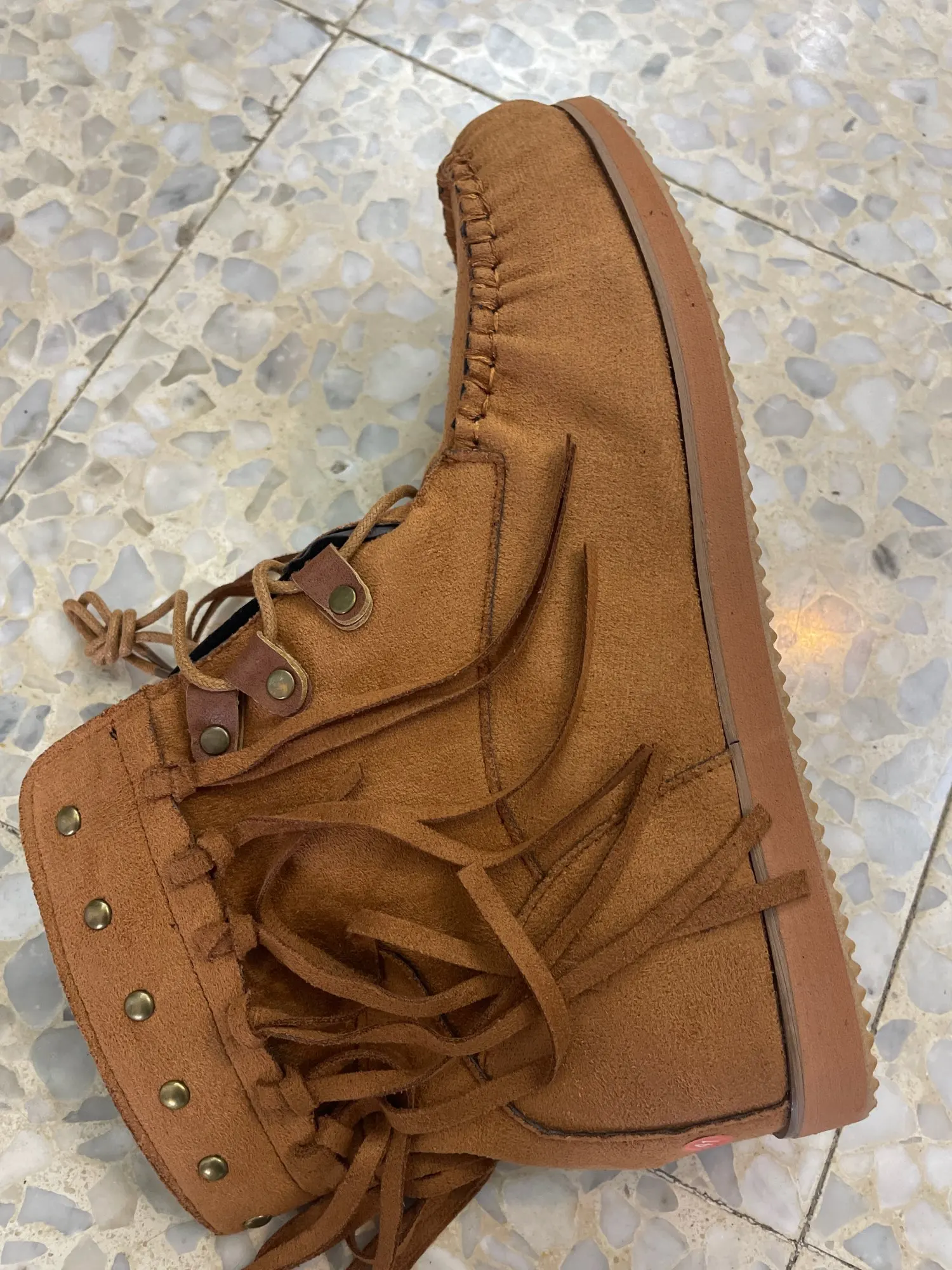 Женские зимние ботильоны в британском стиле, матовые ботинки с бахромой, популярные ботинки на шнуровке в стиле бохо, Женская Ковбойская обувь, Botas Mujer