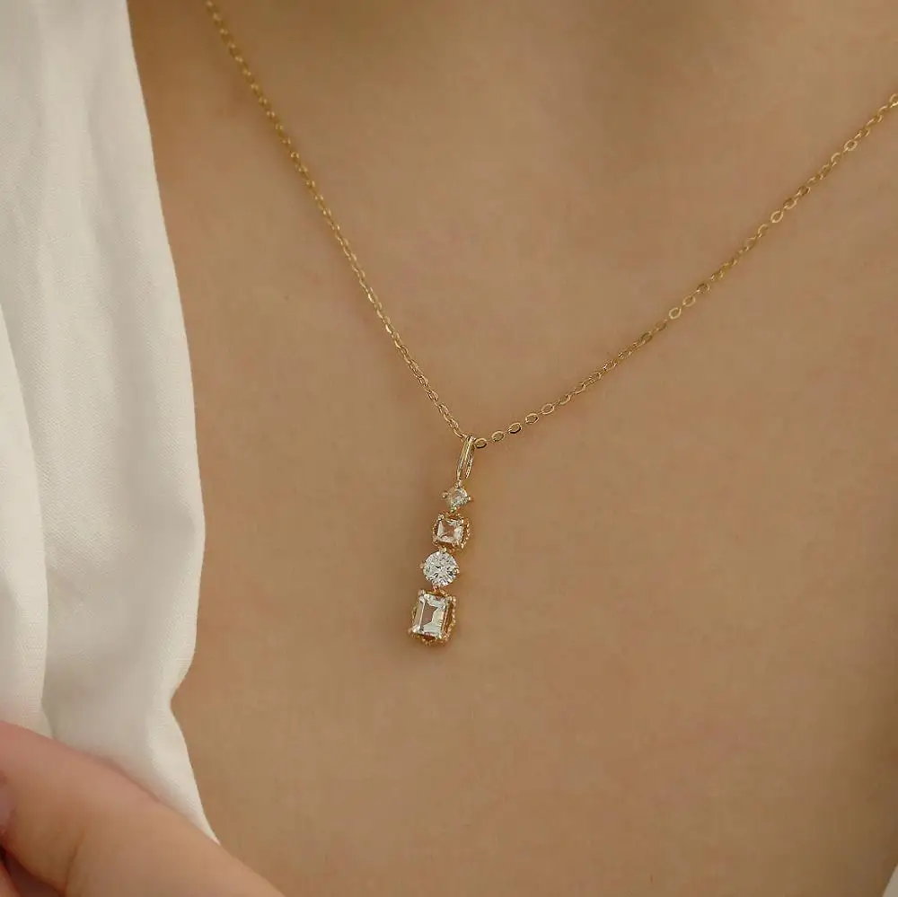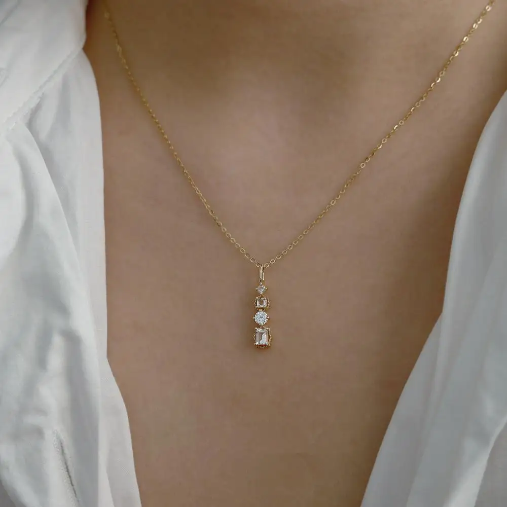 Ожерелье женское из серебра 925 пробы, с квадратным кристаллом