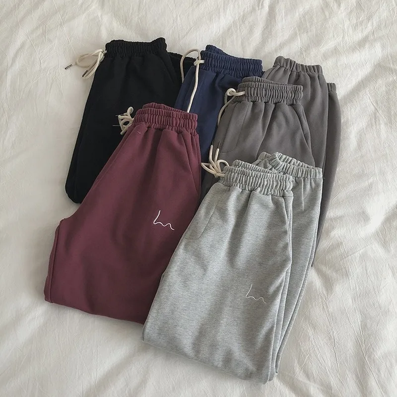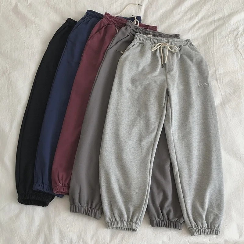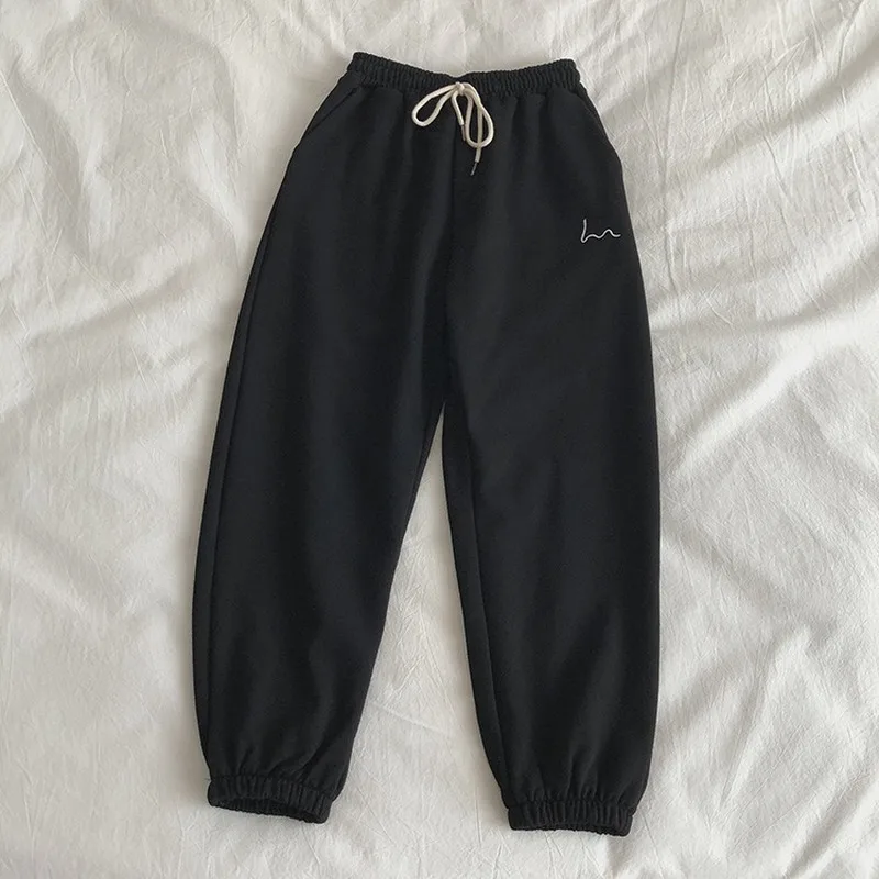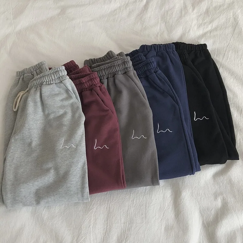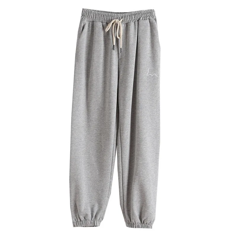 Зимние женские шаровары с вышивкой в полоску, серые и черные флисовые штаны, 2020