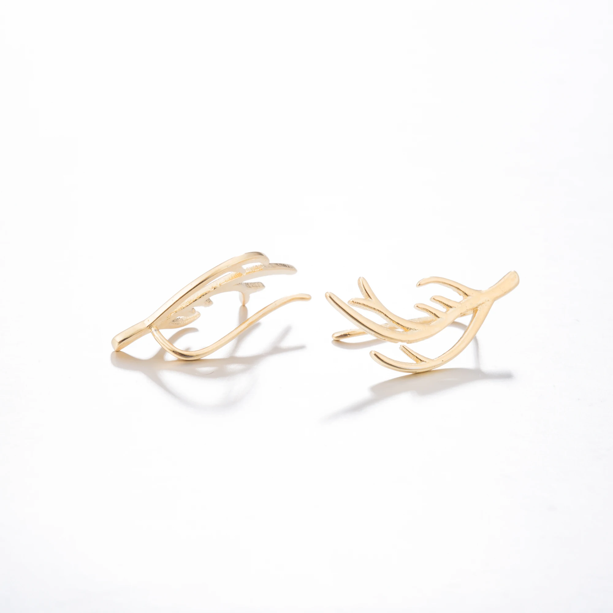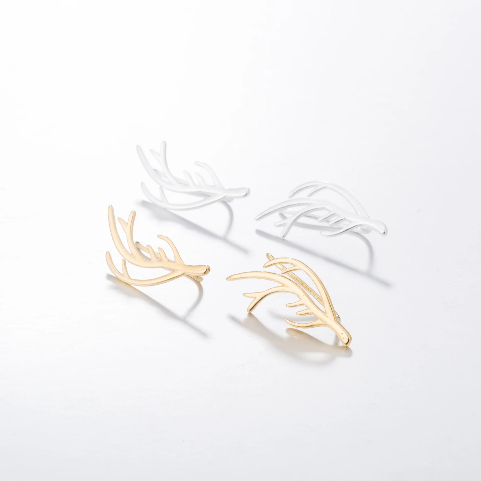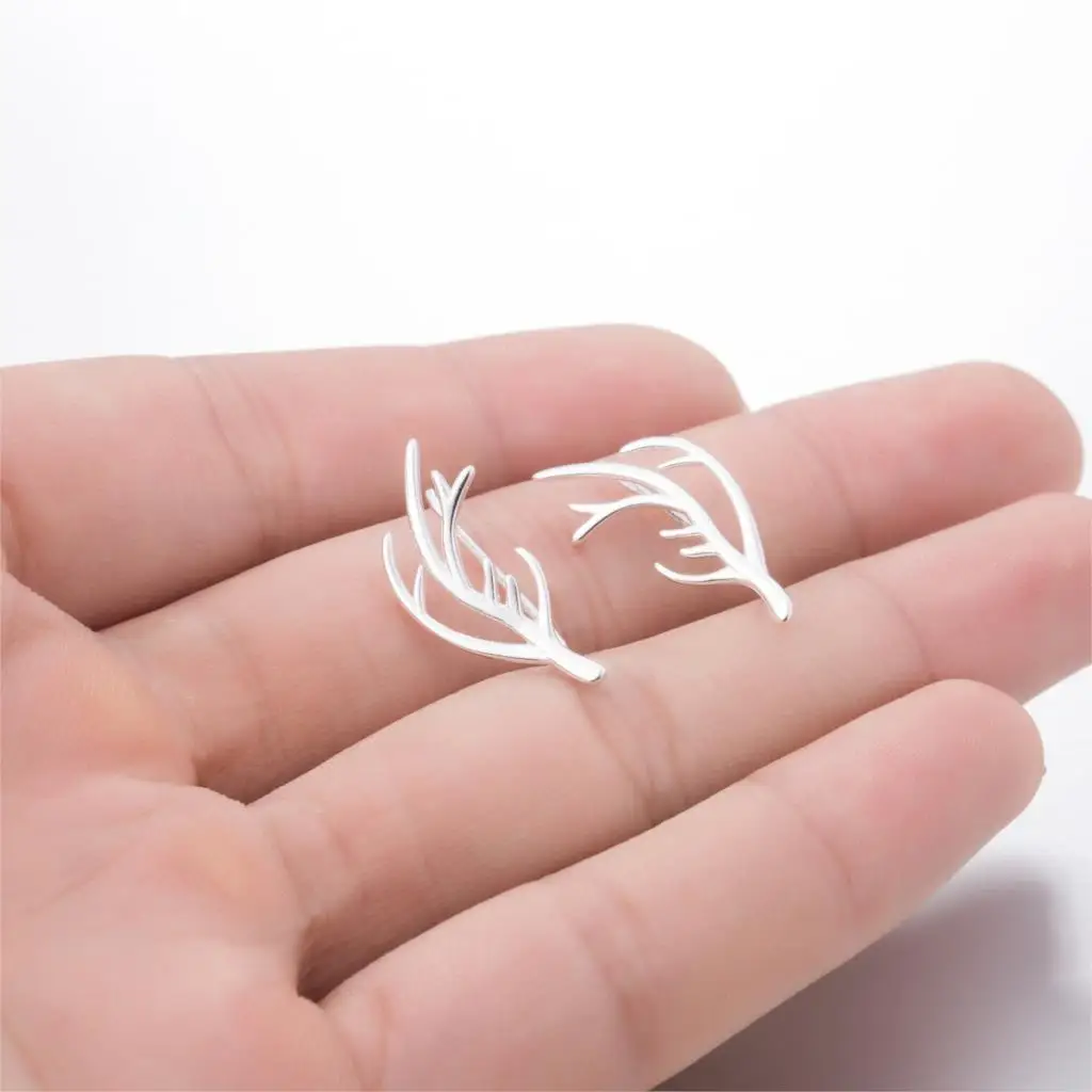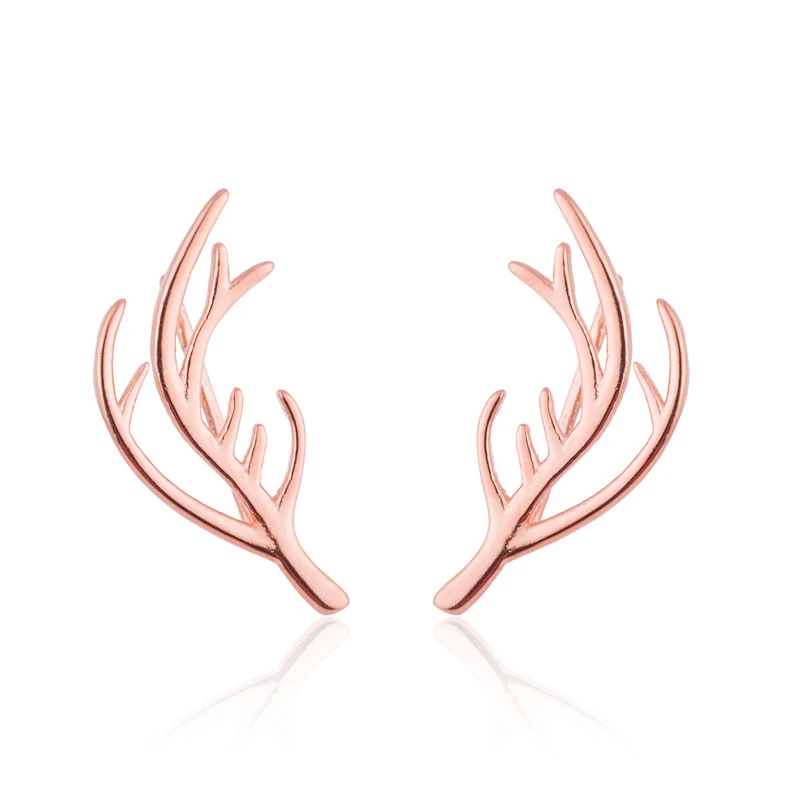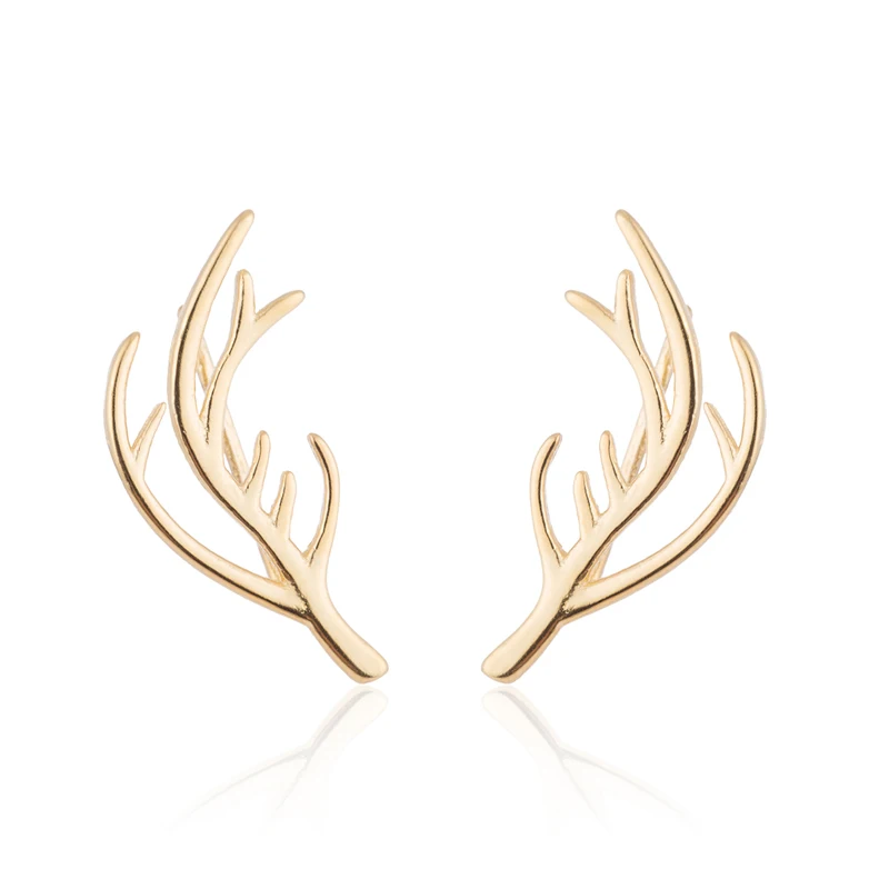 Серьги-гвоздики в виде рогов золотого оленя на удачу, оленя, лося, модные рождественские украшения, подарок на Рождество, праздничные аксессуары для ушей