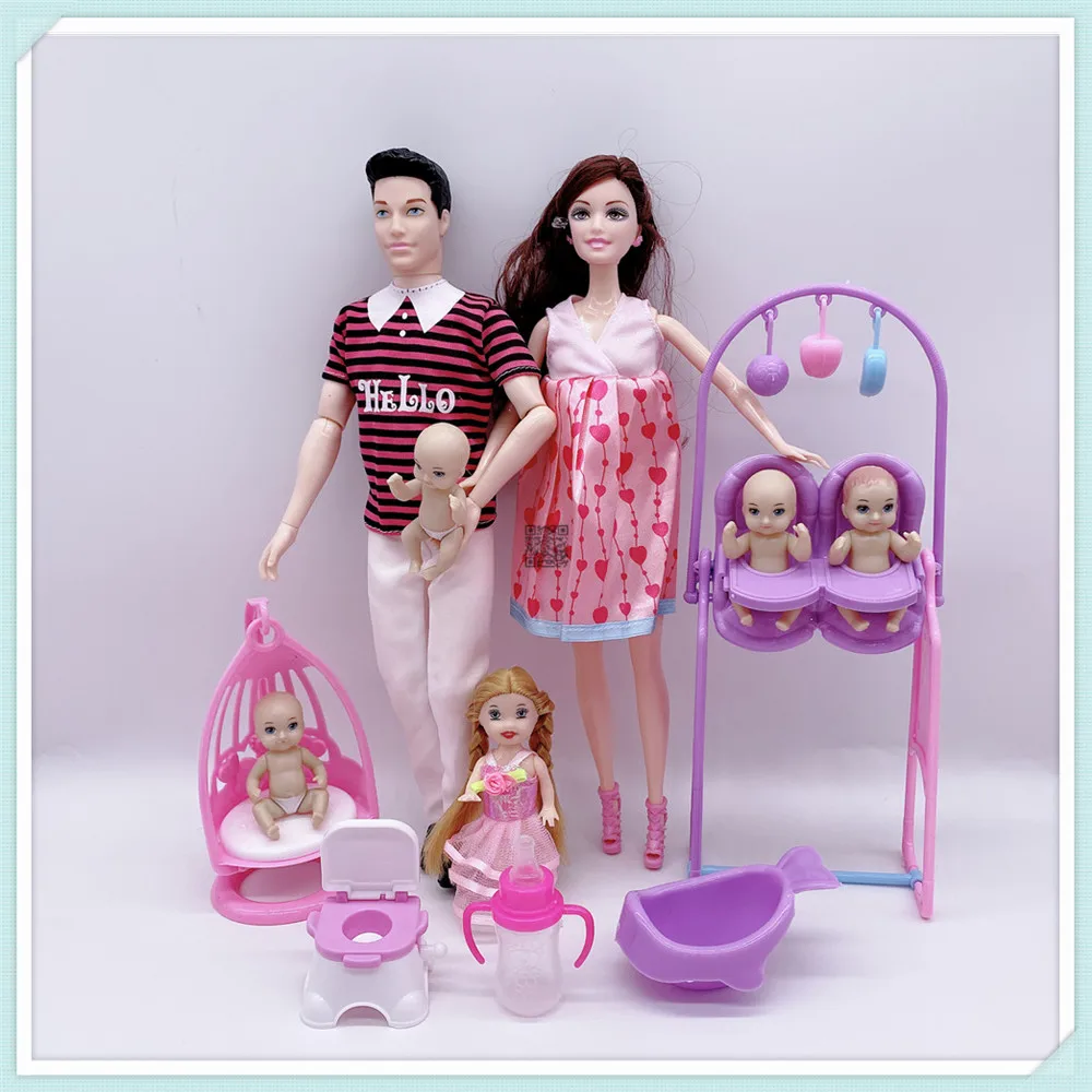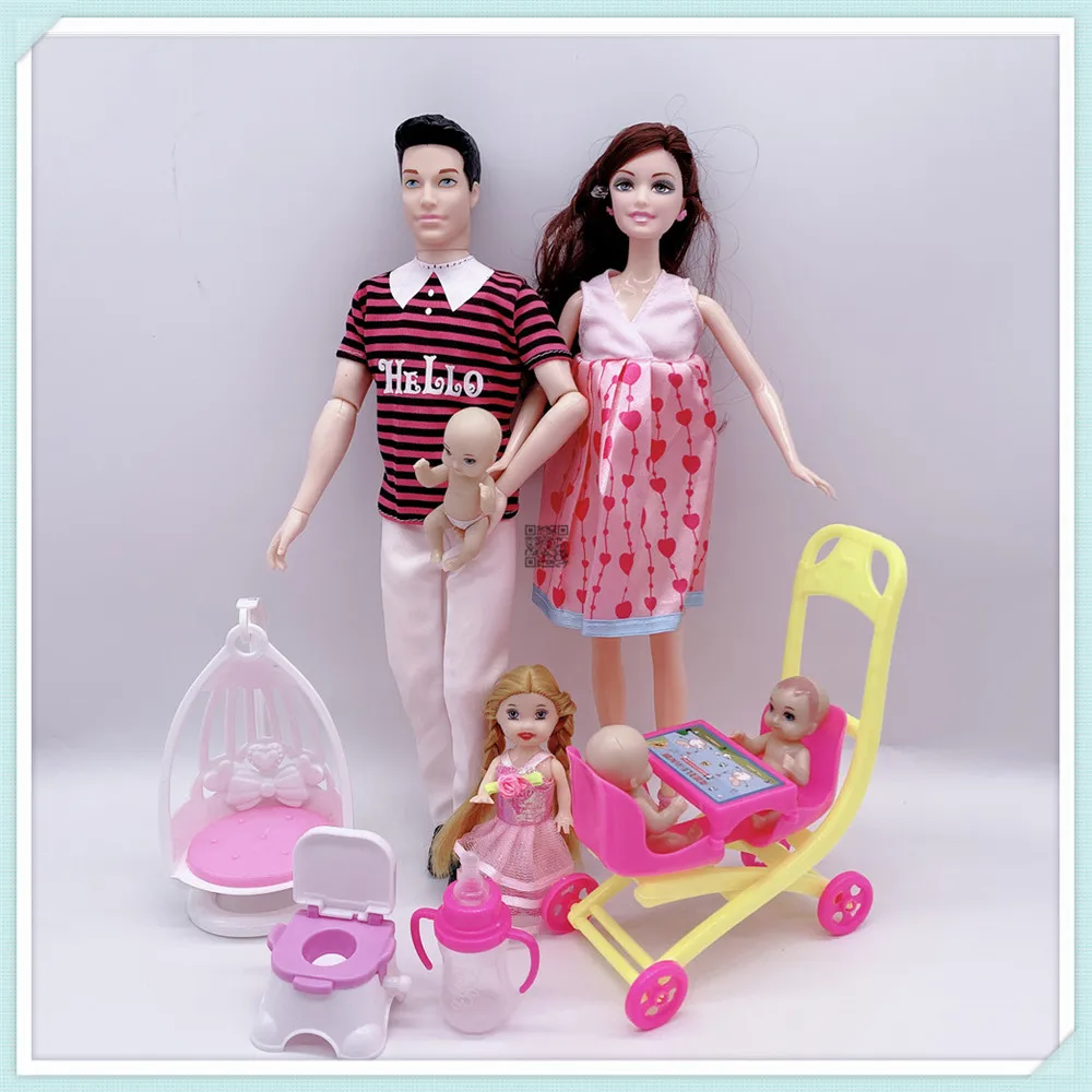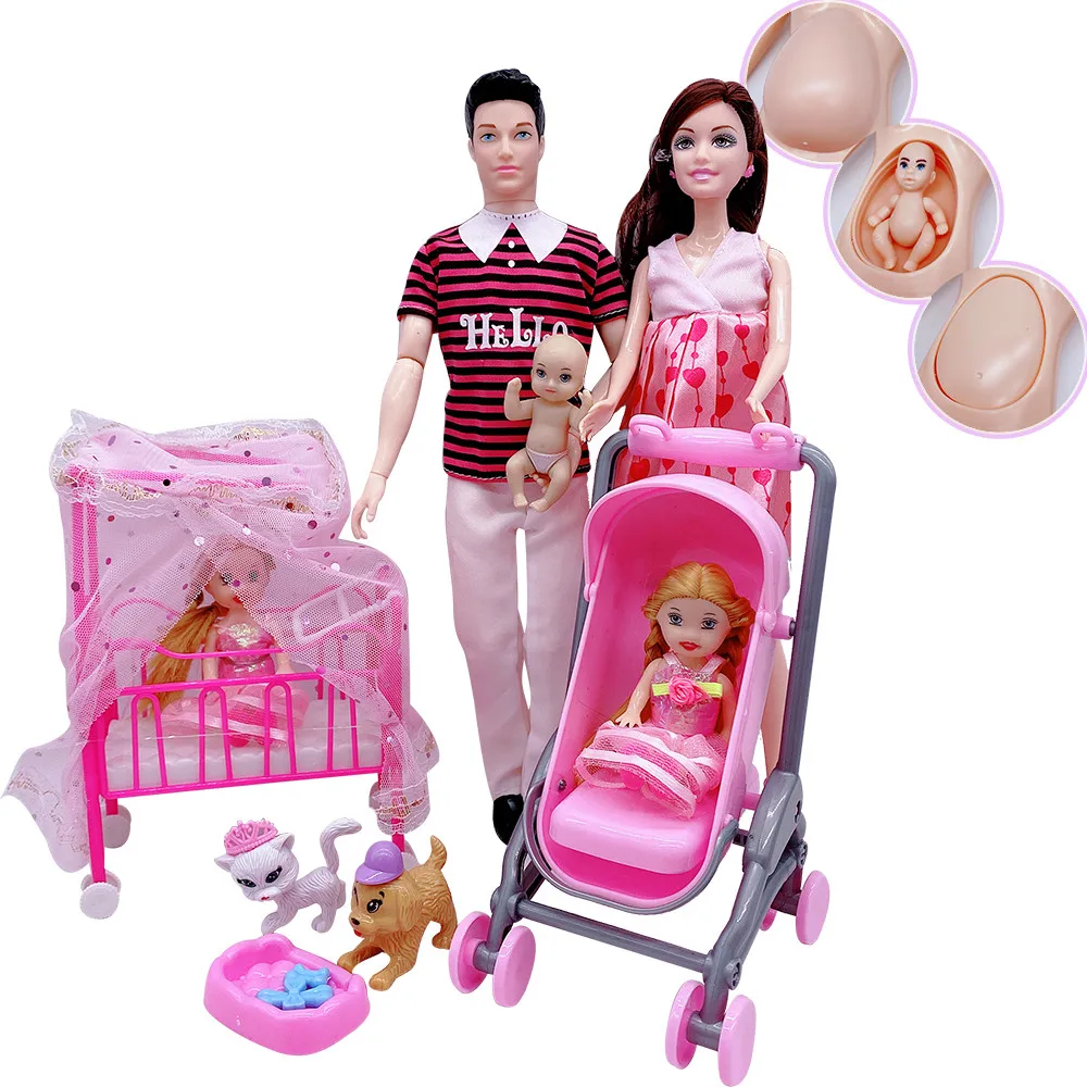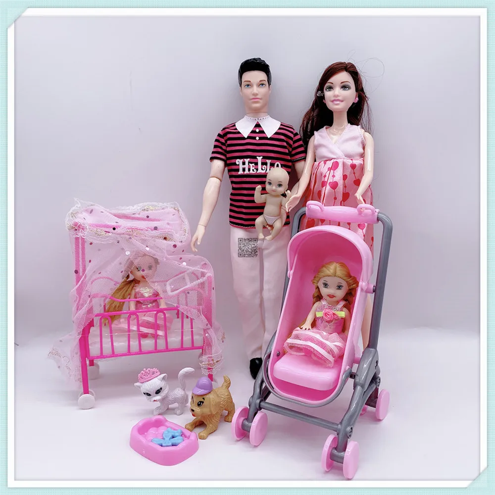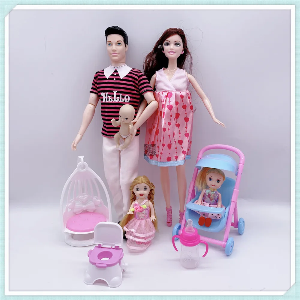 Комбинация для семьи на 5 человек, Барби для папы и беременной мамы 11,5 дюйма, мини-кукла для кроваткиколяски 53,5 дюймов, детская игрушка, лучший подарок