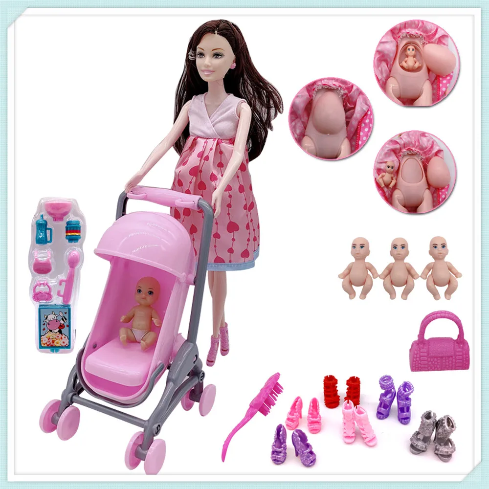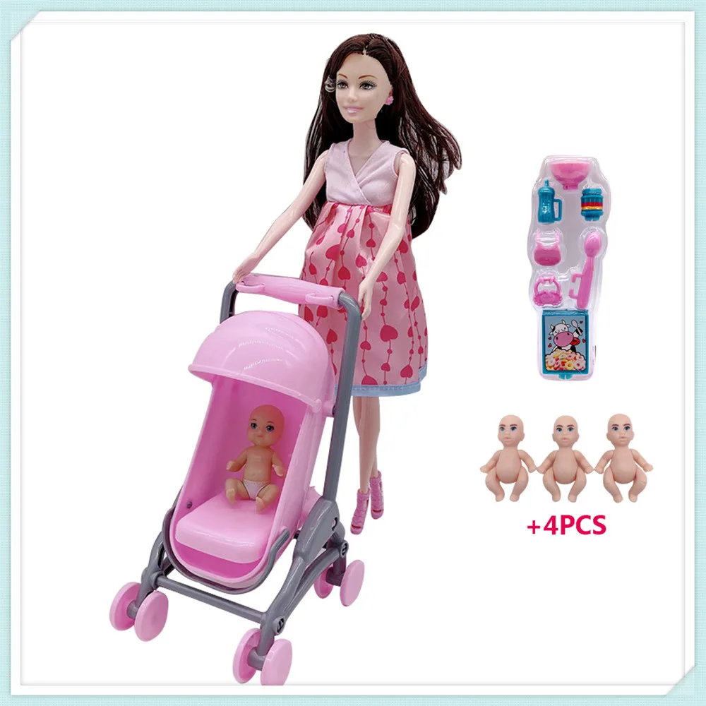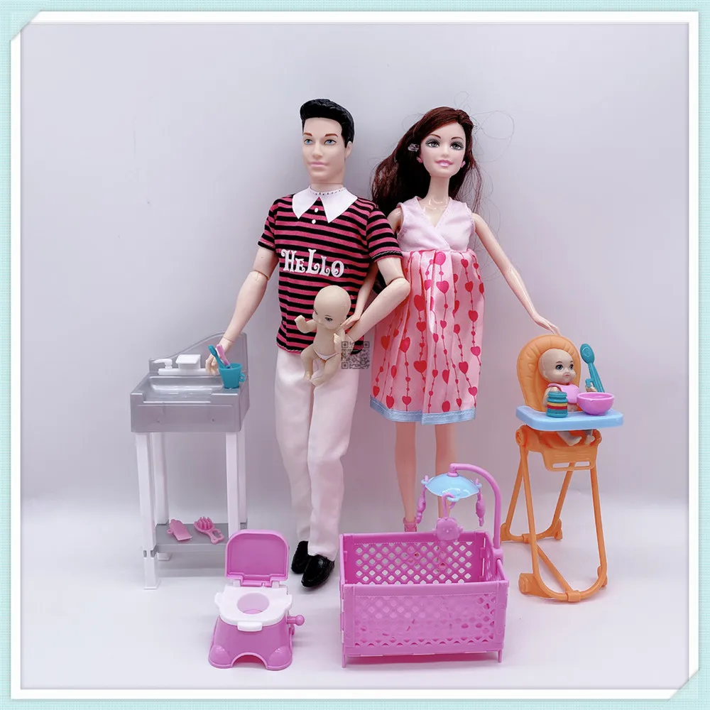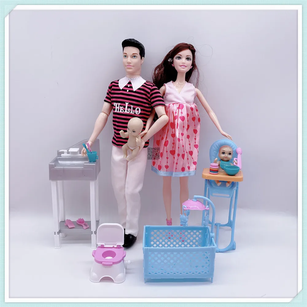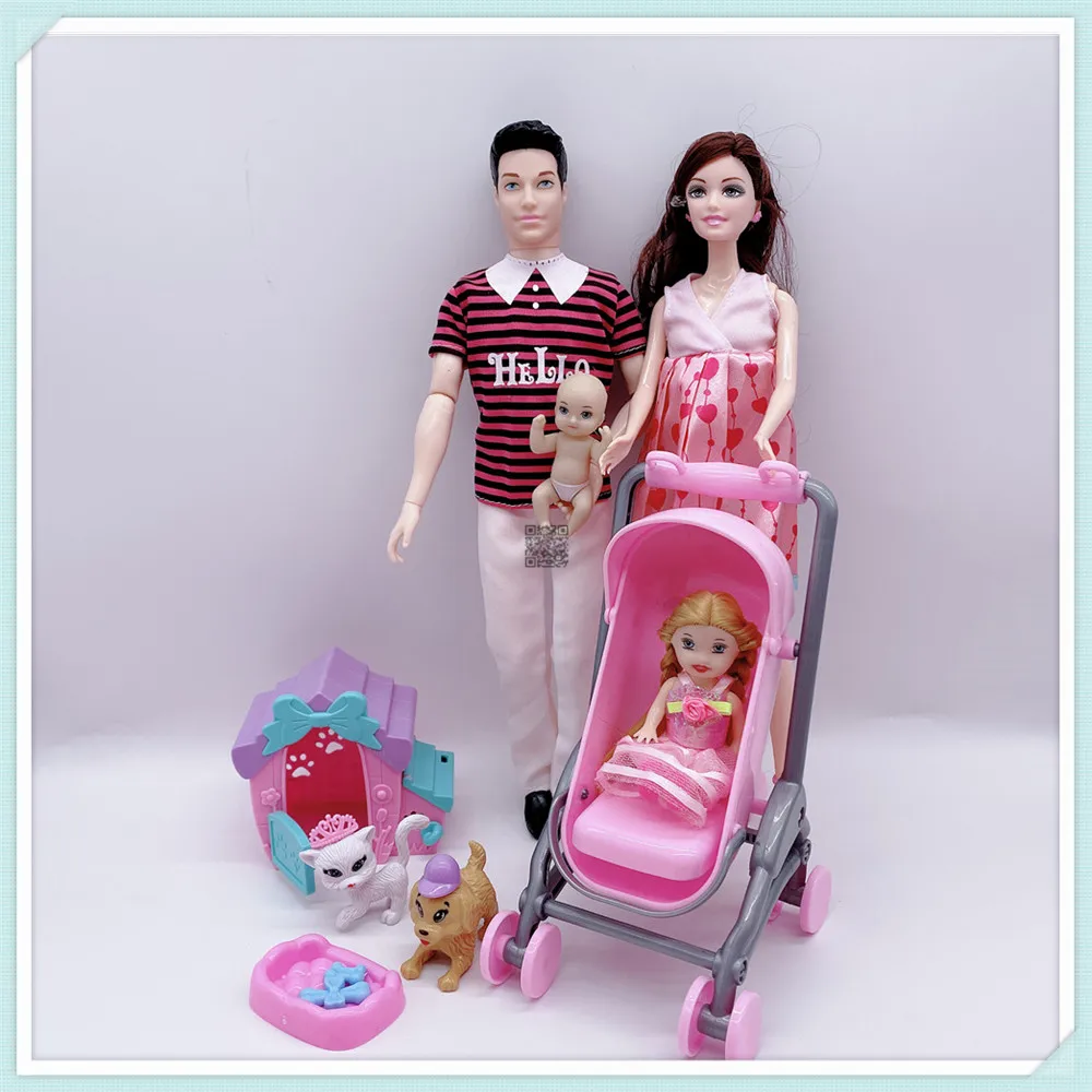 Комбинация для семьи на 5 человек, Барби для папы и беременной мамы 11,5 дюйма, мини-кукла для кроваткиколяски 53,5 дюймов, детская игрушка, лучший подарок