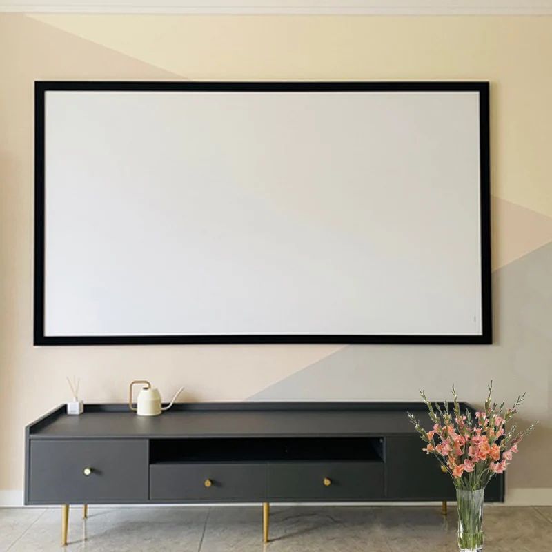 Оправа изготовлена из алюминиевого сплава и флокируется, превосходно и великолепно, применяется для украшения и дизайна любого стиля. С научным производственным процессом.Рамка экрана разработана с постоянным размером, и это хорошо для различных салонов, командного центра, домашнего кинотеатра и ourdoors. Различные форматы видео подходят для проекционных экранов разных размеров.