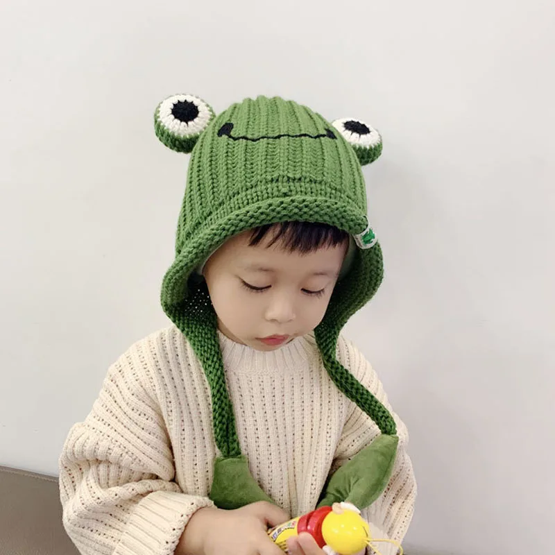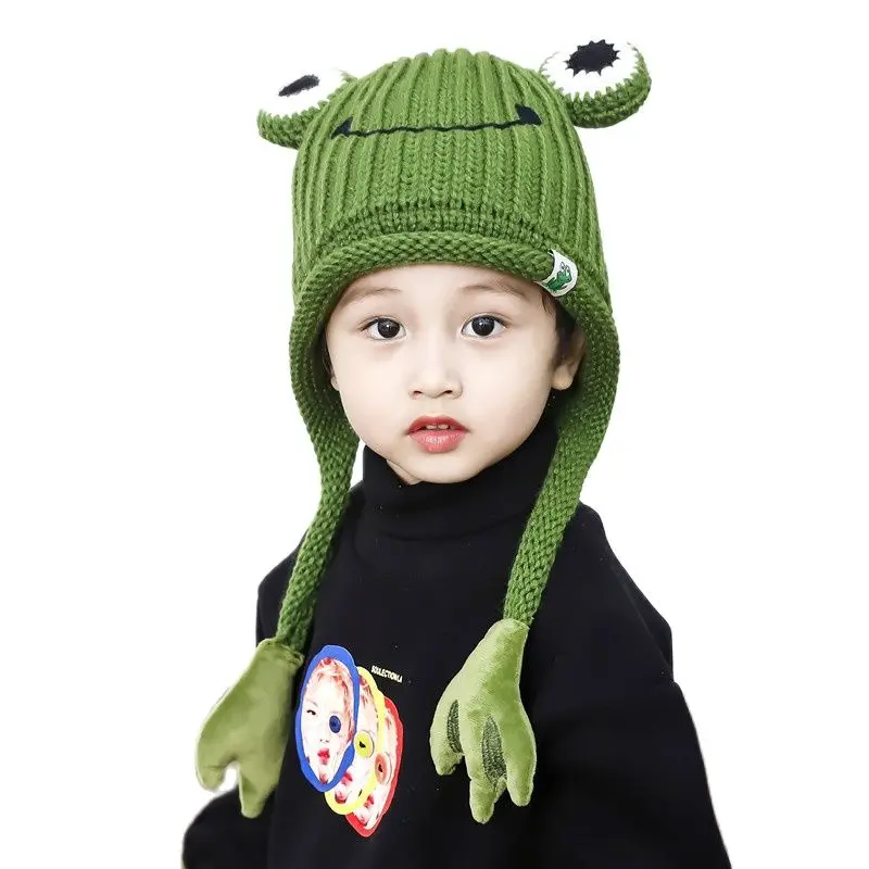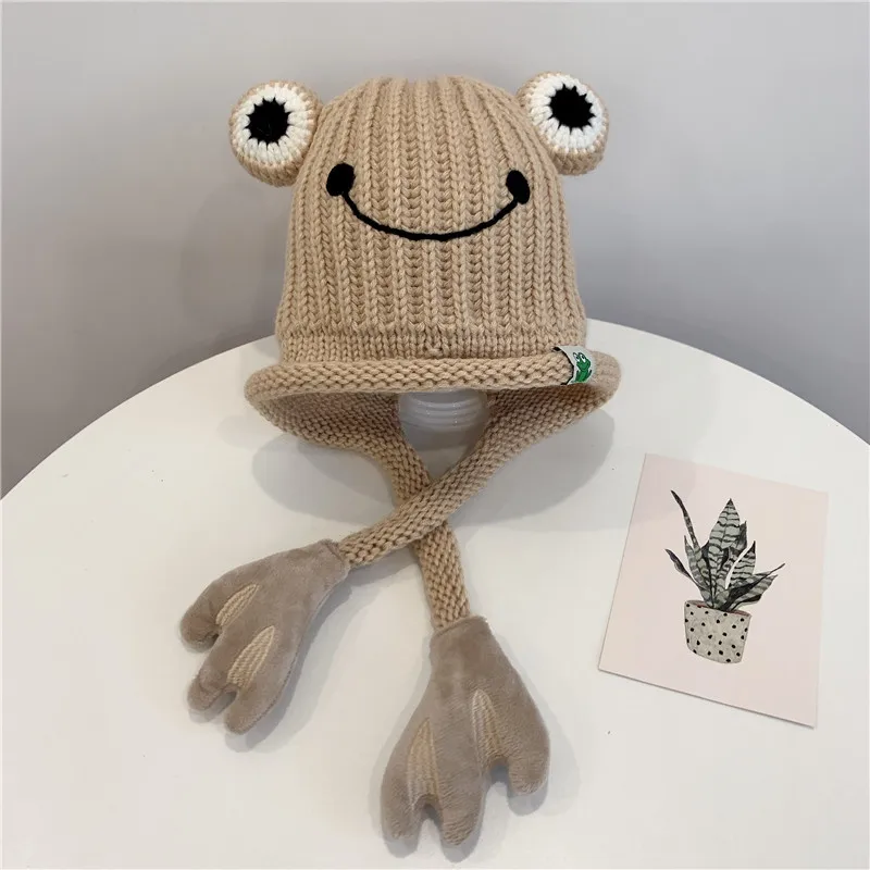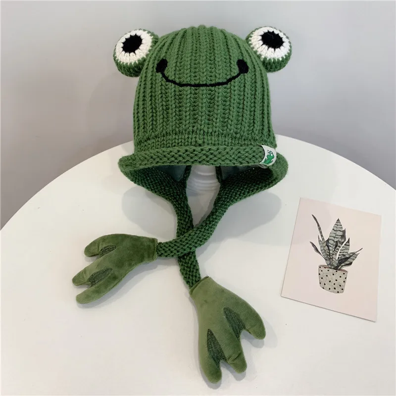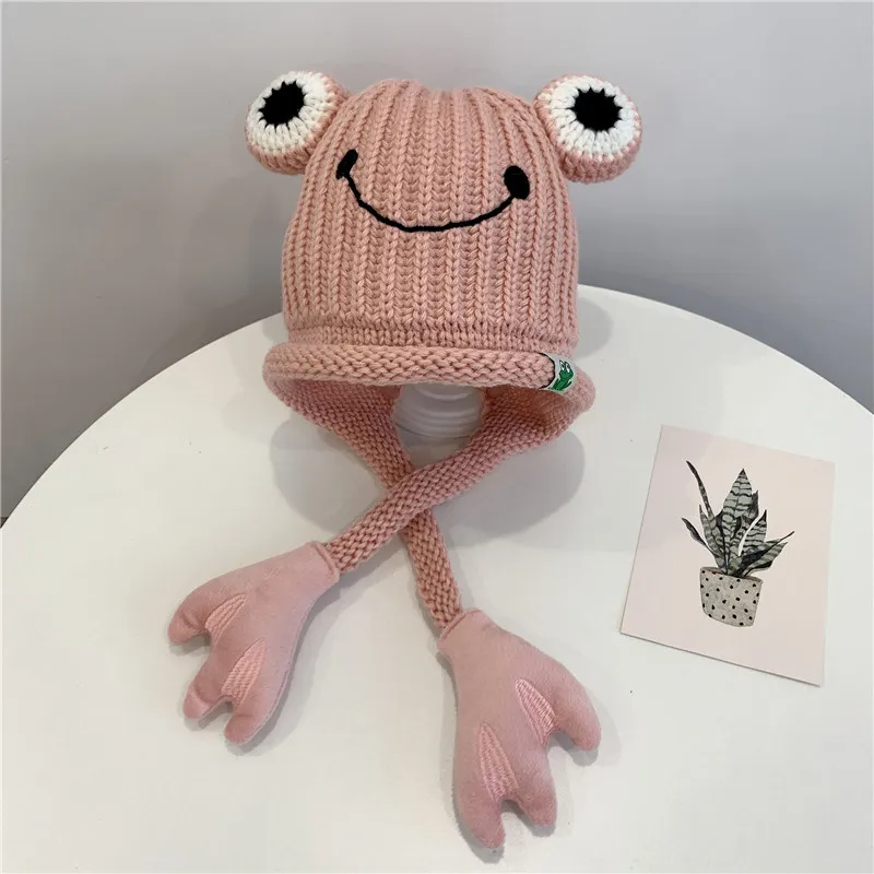 Зимняя шапка Doitbest для детские вязаные шапки от 3 до 8 лет, вязаные детские шапки с рисунком лягушки, ручная шапочка, теплые шапки с ушами для девочек