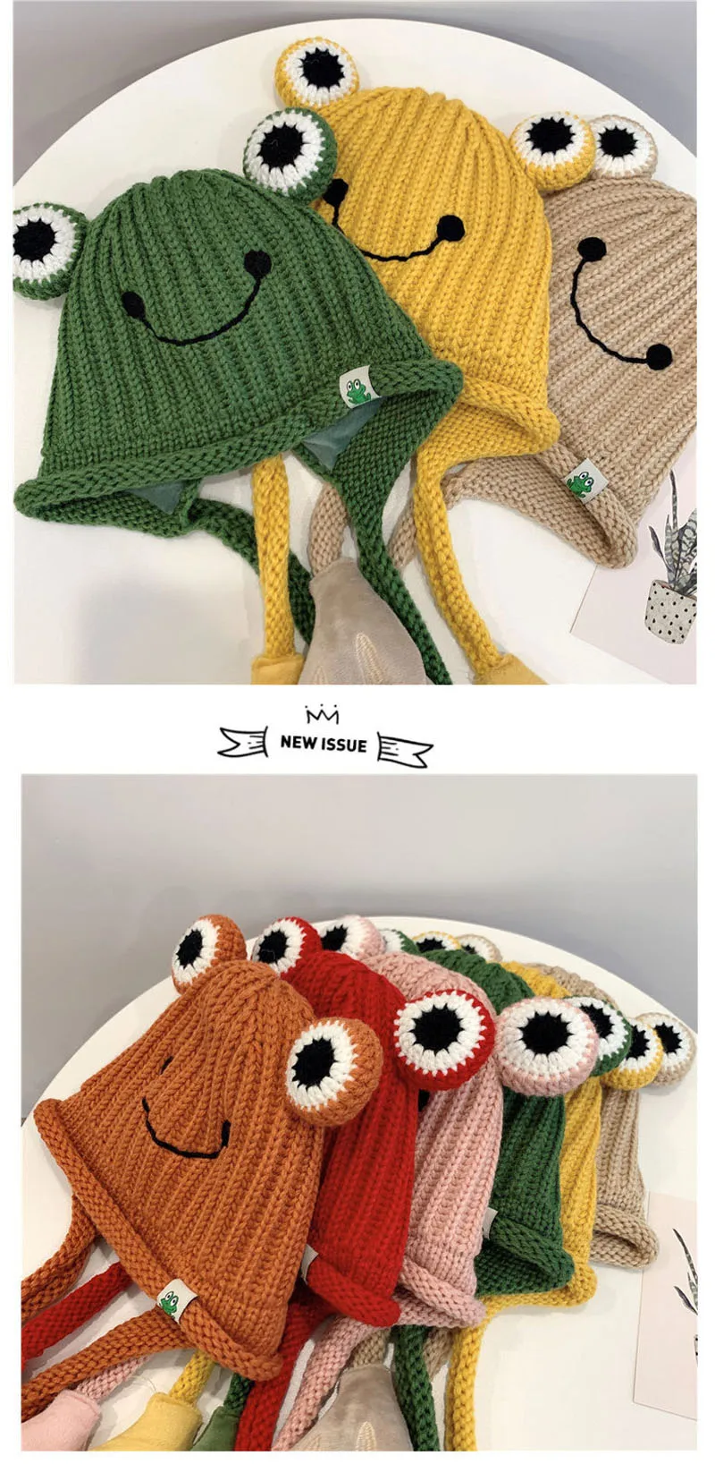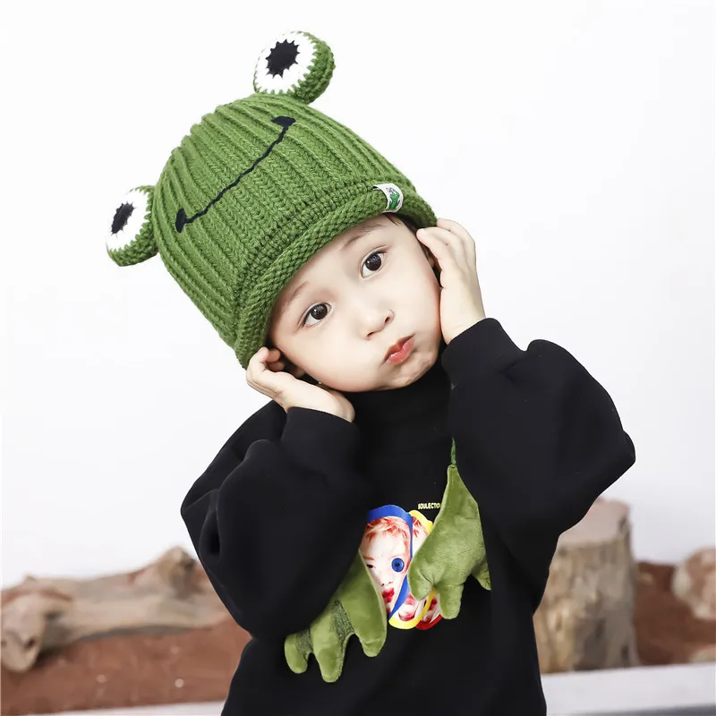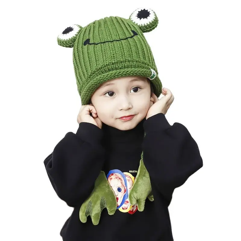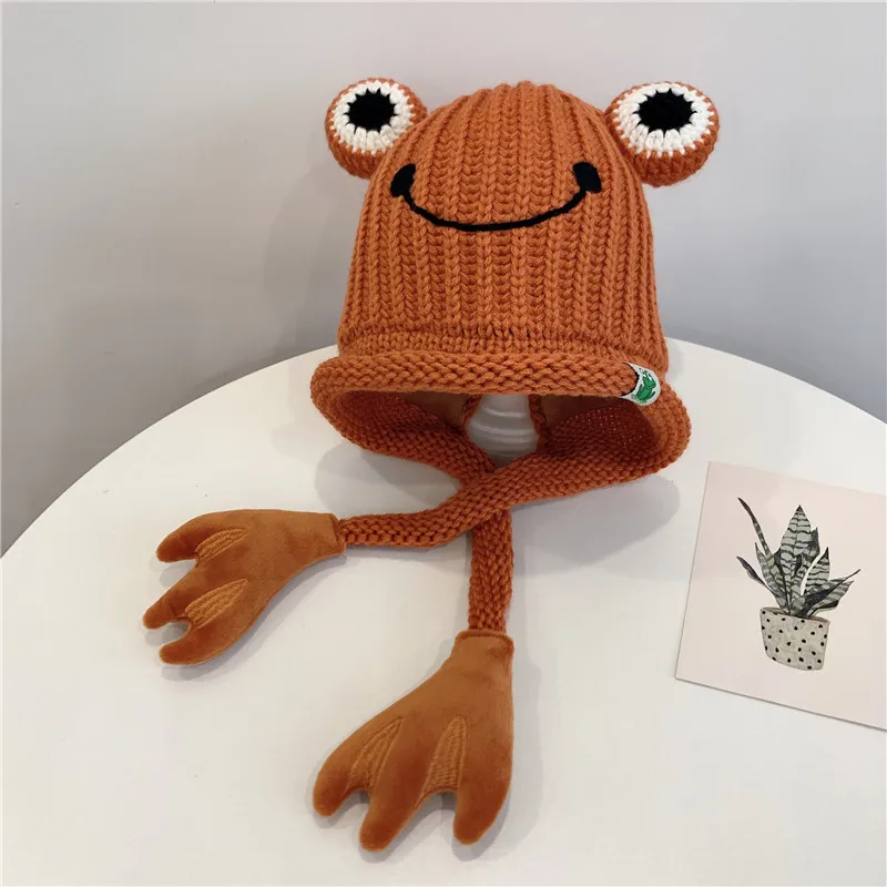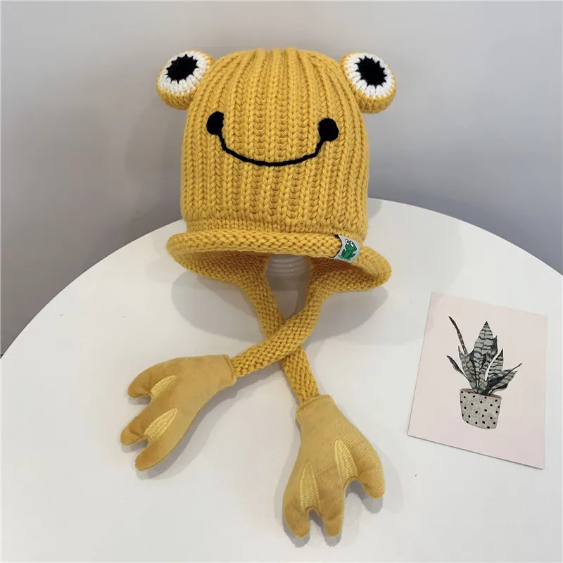 Зимняя шапка Doitbest для детские вязаные шапки от 3 до 8 лет, вязаные детские шапки с рисунком лягушки, ручная шапочка, теплые шапки с ушами для девочек