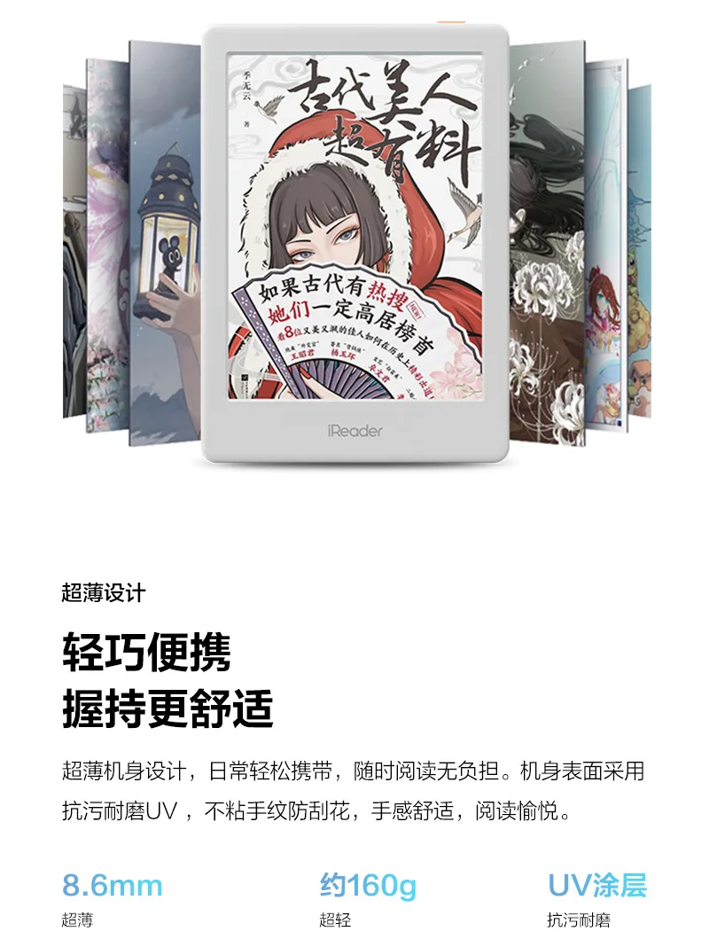 IReader C6 Pro имеет 6-дюймовый емкостный сенсорный экран с 300 PPI и использует новую технологию E INk Print-Color e Paper, иначе известную как Kaleido. Он может отображать более 4000 разных цветов, который пригодится для PDF файлы, газеты, журналы, и просто для чтения электронных книг обложки. Он имеет переднюю систему отображения с 28 светодиодный подсветкой, так что вы сможете читать в темноте. Есть белый и синий светодиодный свет, чтобы изменить яркость экрана. У него нет системы цветовой температуры, и это по хорошей причине. Янтарный светодиодный светильник нарушит цветовую гамму.Под капотом находится четырехъядерный высокоскоростной процессор, 1 Гб оперативной памяти и 32 Гб внутренней памяти. Он имеет встроенные динамики, которые полезны для текста в речь и прослушивания аудиокниг или музыки. Если вы предпочитаете подключить пару беспроводных наушников, у него есть Bluetooth 4,1. Wi-Fi доступ в Интернет в основном используется для доступа к услугам Baidu или для покупки электронных книг. Он весит 150 грамм, 6,9 миллиметров толщиной, светильник и удобные, и может быть держать одной рукой. Он питается от аккумулятора емкостью 1700 мА · ч, который больше, чем большинство.В настоящее время пользовательский интерфейс находится на китайском языке, и вы не можете использовать его в приложениях. Вы можете загружать свои собственные электронные книги на английском языке и файлы PDF на английском языке и читать их. Он также поддерживает большинство языков для EPUB.