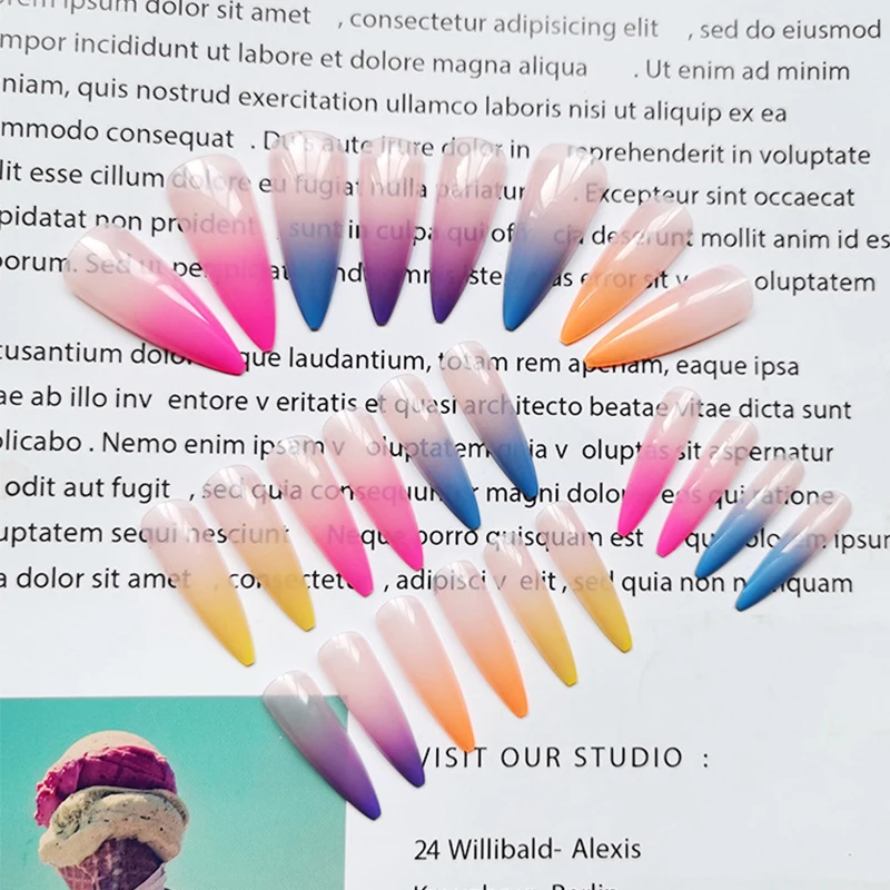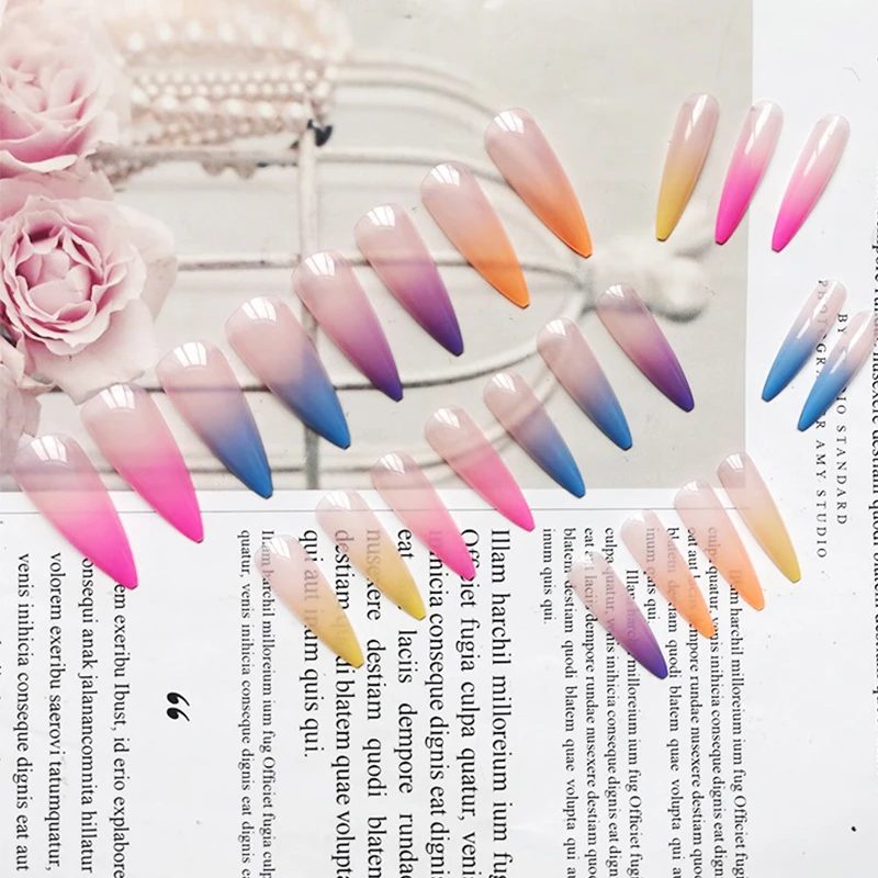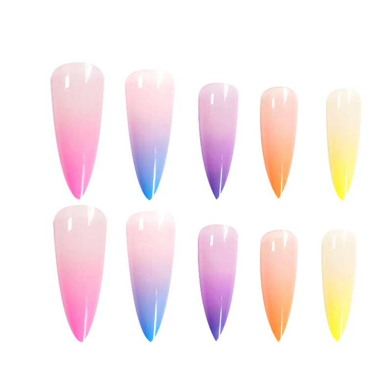 Длинные накладные ногти-стилеты, ногти радужного цвета, полное покрытие, накладные ногти с наклейкой, украшение для ногтей, искусственные ногти, накладные ногти