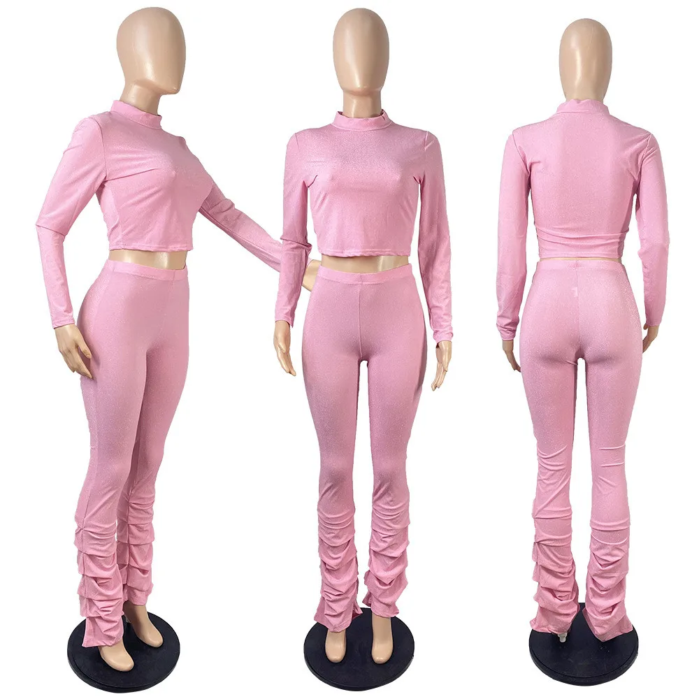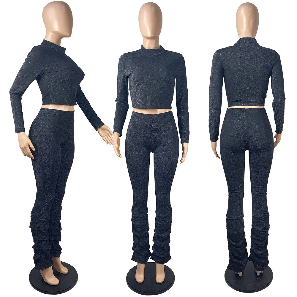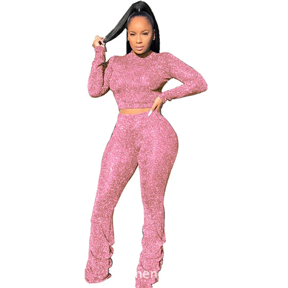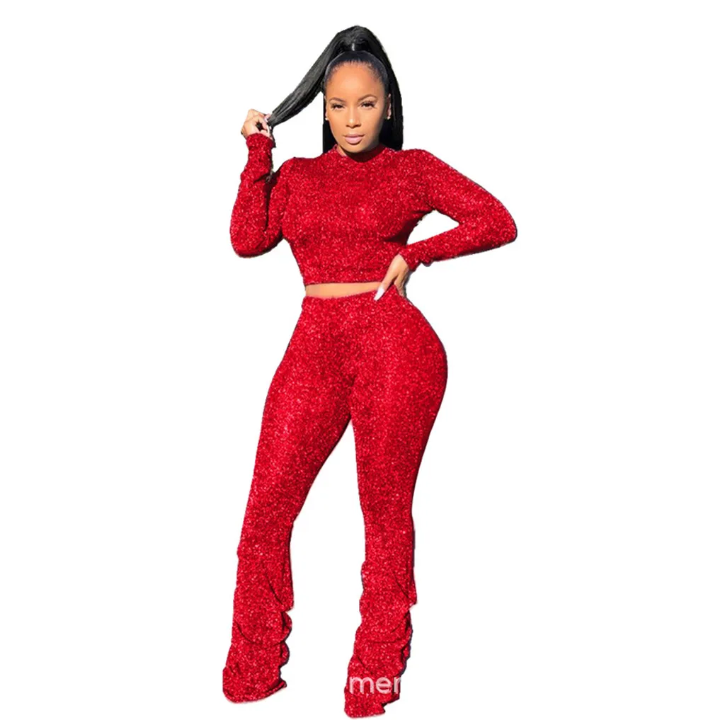 Блестящий комплект из двух предметов для женщин, праздничная одежда, короткий топ, штаны, соблазнительный клувечерние вечерний комплект для дня рождения