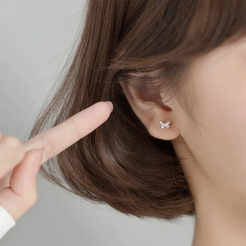 Серьги-гвоздики из серебра 925 пробы с насекомыми и бабочками