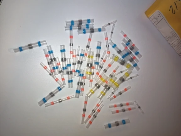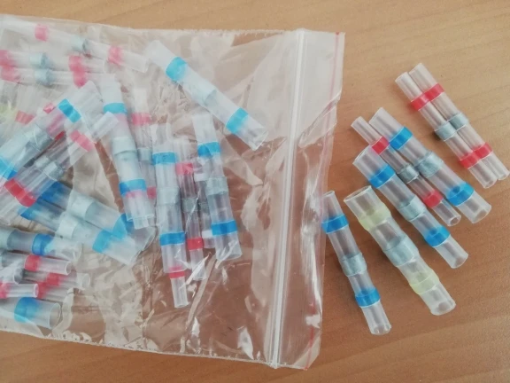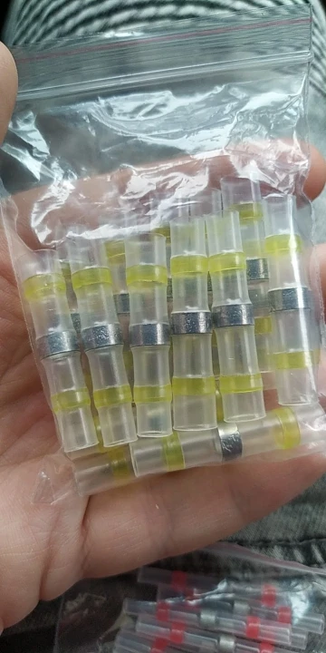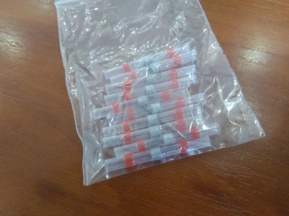 Соединительные трубки хорошие, в хозяйстве пригодятся, не знаю как в полях с зажигалкой, а феном очень хорошо все получается усаживать, плавить, выставлял 200 градусов, по времени припой начинает растекаться примерно через минуту, тут надо понимать, что еще создается препятствие горячему воздуху в виде самой трубки. На фото примерные замеры внешнего диаметра трубки до прогрева и после. Внутренний диаметр после прогрева трубки - 2.5мм