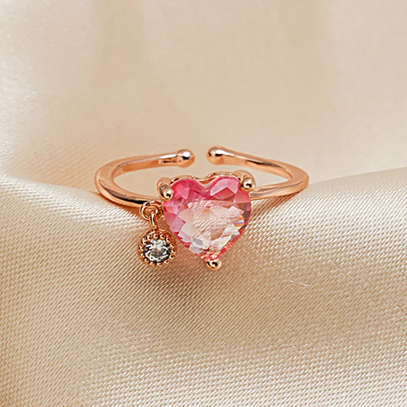Новое модное обручальное кольцо с кристаллом цирконием в форме сердца для женщин, розовое золото, милое Элегантное открытое кольцо с цирконием, подарок для девушек