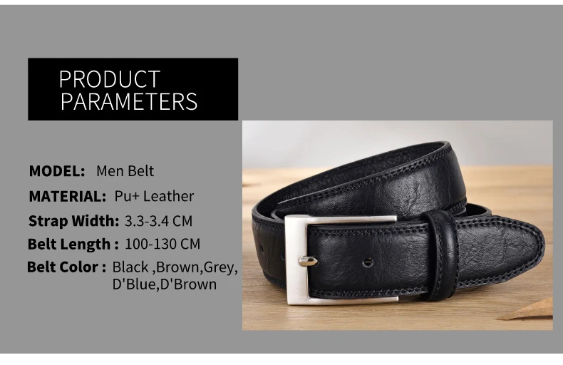 Подробная информация о ремне: Название ремня: модный мужской ремень Стиль пряжки: Пряжка Цвет ремня: черный, коричневый, серый, темно-синий, темно-коричневый Стиль: имиджевый, официальный, новинка, кэжуал, деловой Длина ремня: от 95 см до 130 см (без размера талии) Пожалуйста, выбирайте размер правильно Пояс можно регулировать в зависимости от размеров вашей талии.