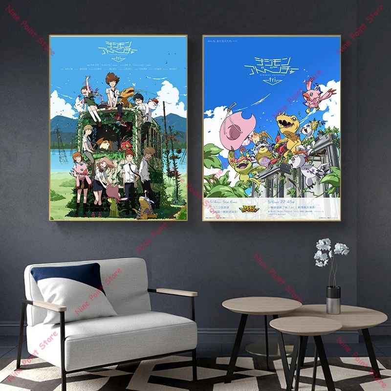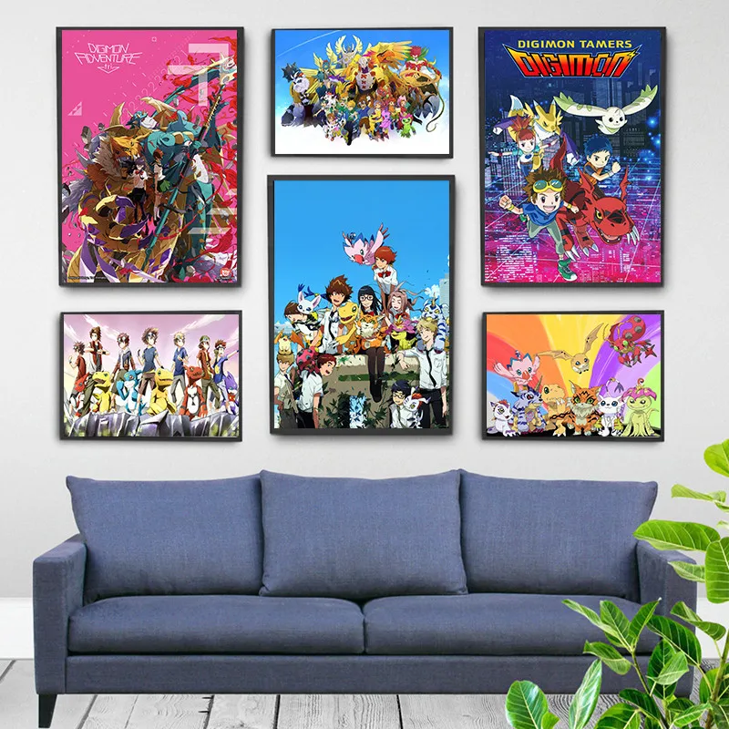 Япония Аниме Приключения Дигимонов три комикс настенное Искусство Холст Картина детская комната плакат