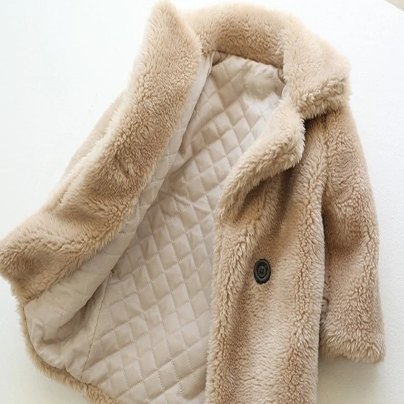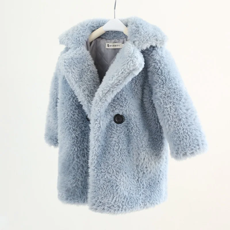 Модная зимняя куртка для маленьких девочек теплое шерстяное пальто с мехом и овечкой для малышей Верхняя одежда для малышей, высококачественная одежда для девочек, От 2 до 14 лет