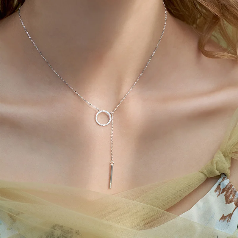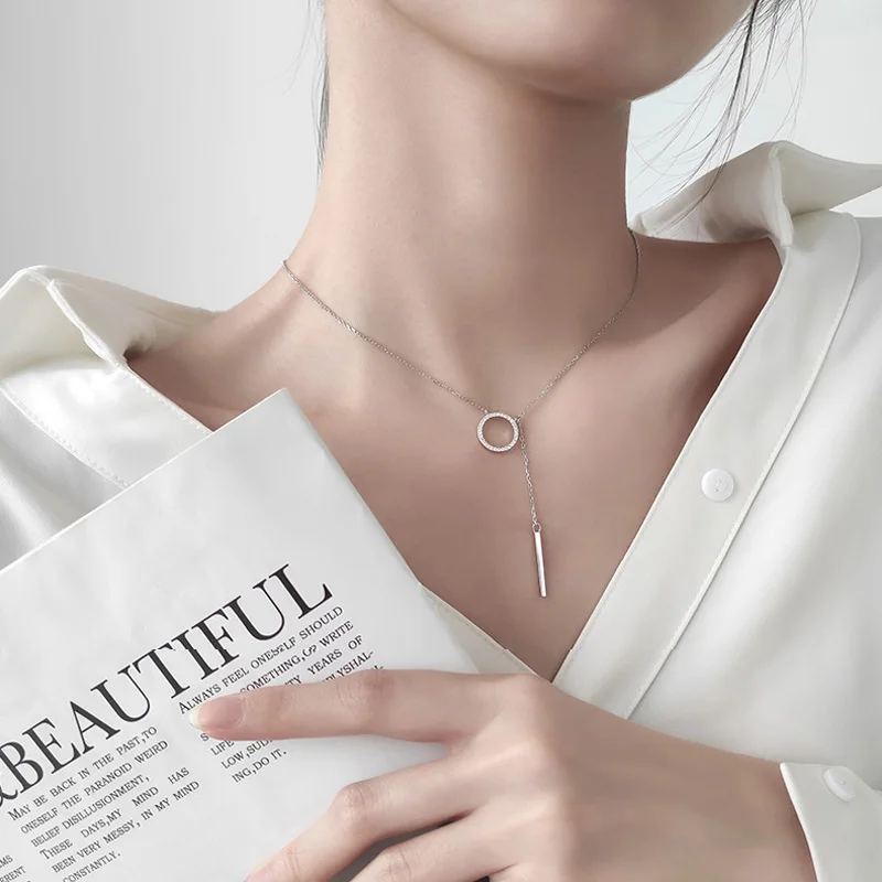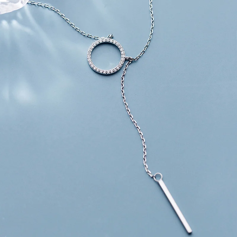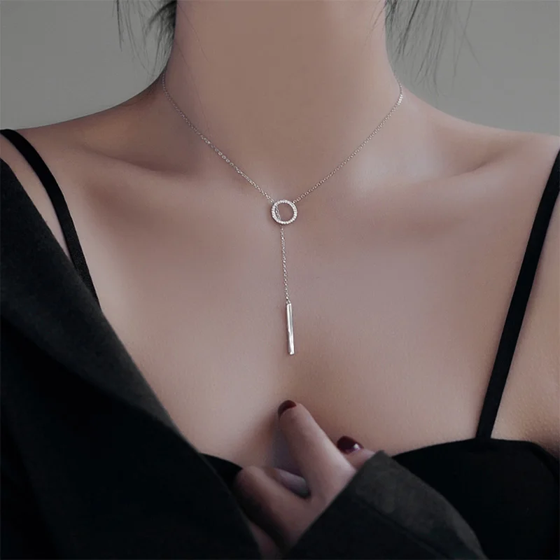 Колье-Палочка из серебра 925 пробы, с цирконием класса ААА, на длинной цепочке, блестящее Ювелирное Украшение