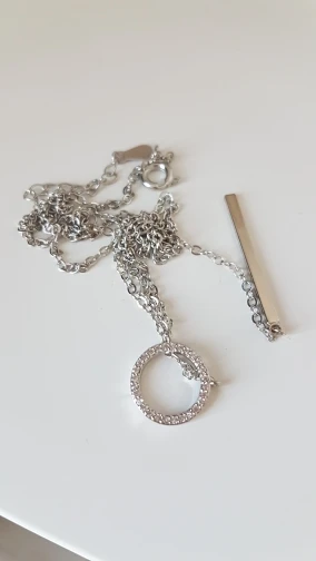 Красивое колье. Цепочка очень тонкая. палочка тут же вылетела из звена - не критично. можно вставить и зажать покрепче. Продавец положил подарок к заказу - серьги. Спасибо) Всем довольна