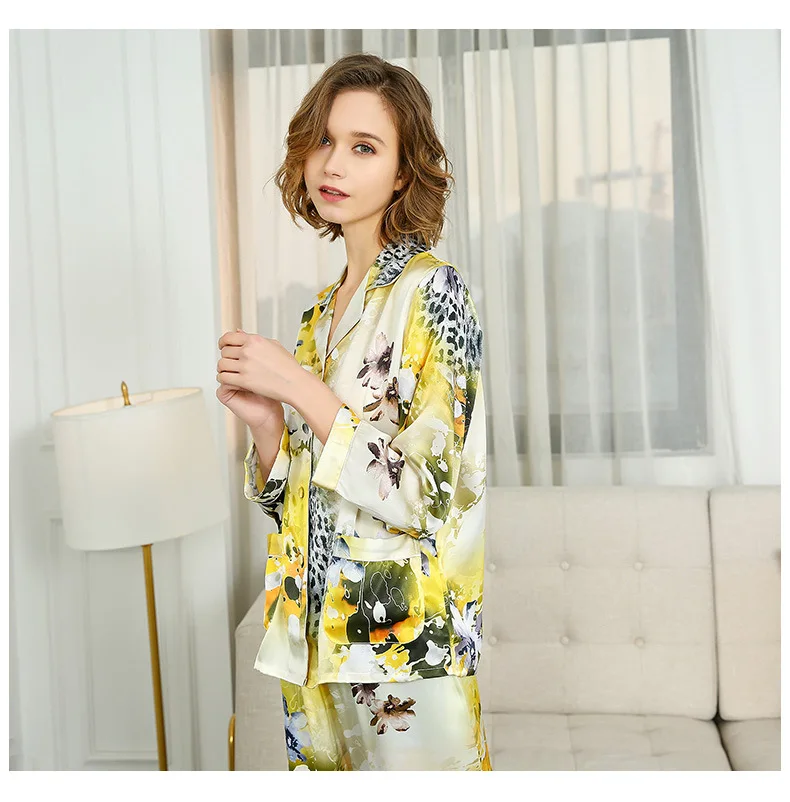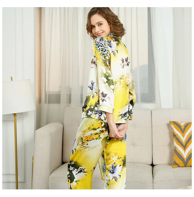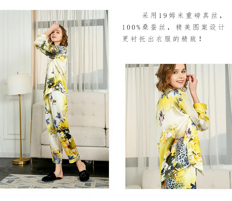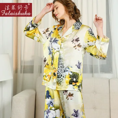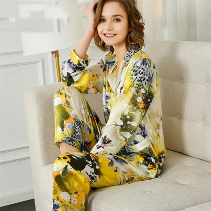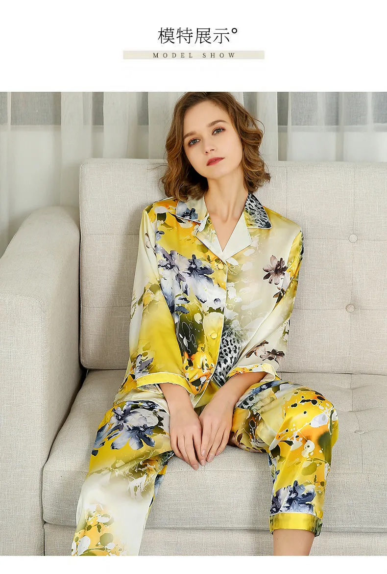 Новинка 2020 пижама из чистого шелка женская одежда для сна летние весенние пижамные комплекты с длинным рукавом пикантная шелковая Домашняя одежда из двух частей Женская FMH65