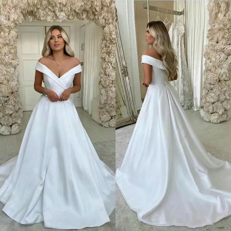 Атласное свадебное платье, вечернее платье с открытыми плечами для ...
