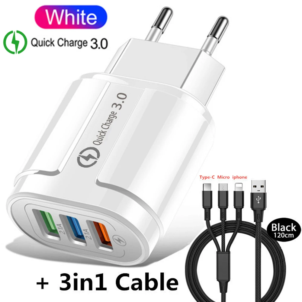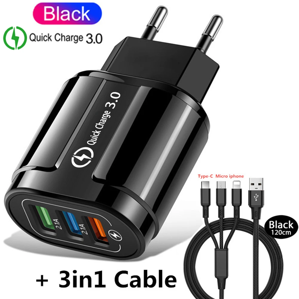 Дорожное зарядное устройство с USB-портом и поддержкой быстрой зарядки 3,0, вилка стандарта ЕССША для Xiaomi iphone 11, 12, Max, мобильный телефон, зарядное устройство для телефона