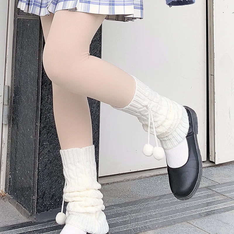 Однотонная белая вязаная женская грелка Lovley, Осень-зима 2022, женская вязаная Милая Студенческая уличная одежда длиной до щиколотки в стиле "Лолита" Jk