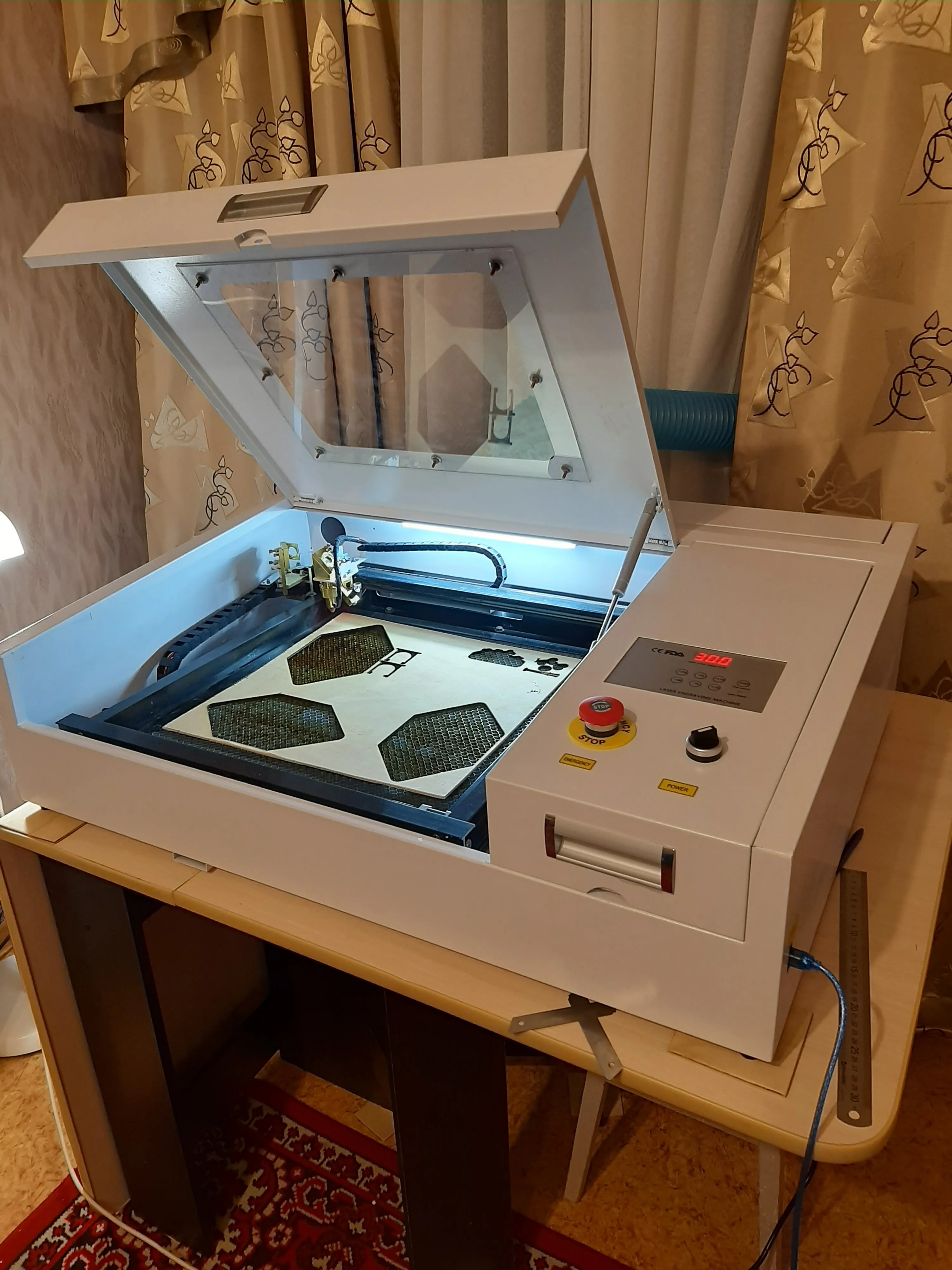 Станок соответствует описанию. Ехал из Читы в Челябинск 27 дней, из которых 10 дней новогодних лежал на складе в Чите. Продавец отвечает сразу. Станок пришел целым, трубка была слабо закреплена, поэтому полностью растроена юстировка. Настроил сам. Трубка 50w, как и заказывал.