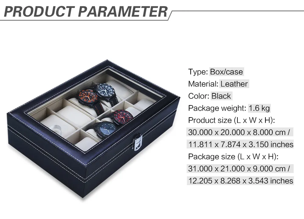 2018 Высокое качество искусственная кожа 12 слотов наручные часы дисплей коробка держатель для хранения Органайзер чехол для часов коробка для ювелирных изделий