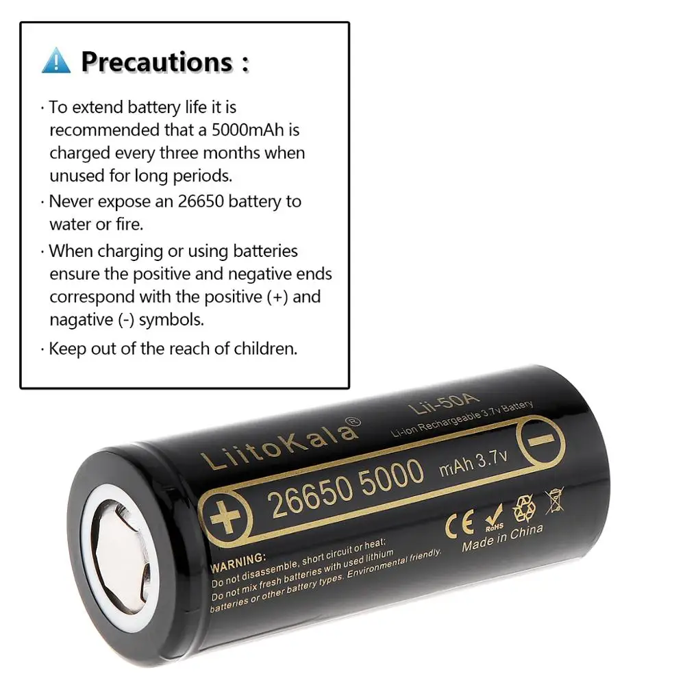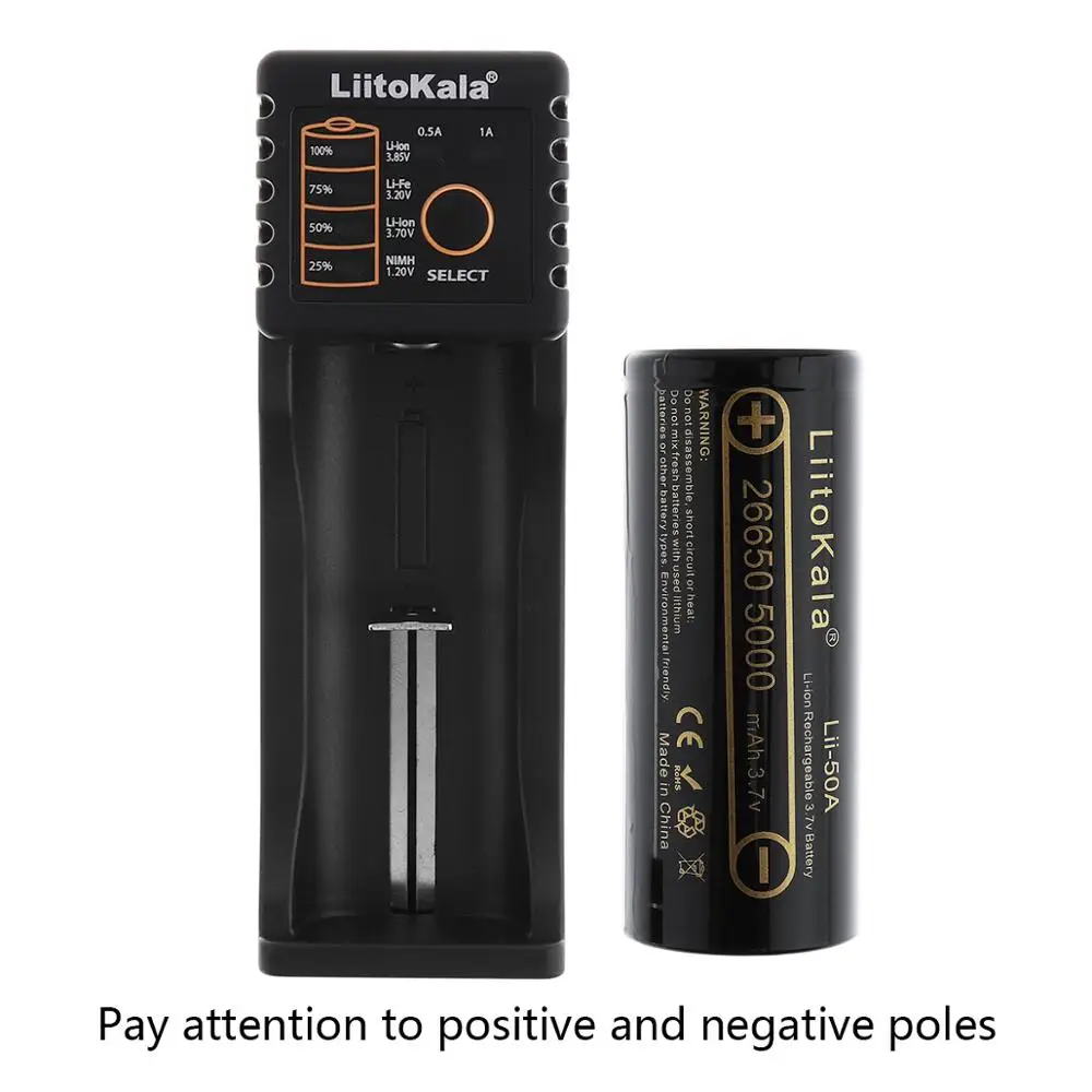 Liitokala 3,7 V 26650 5000 mAh литий-ионный перезаряжаемый аккумулятор + батарея, портативный, Cas + зарядное устройство, уникальный умный разъем USB
