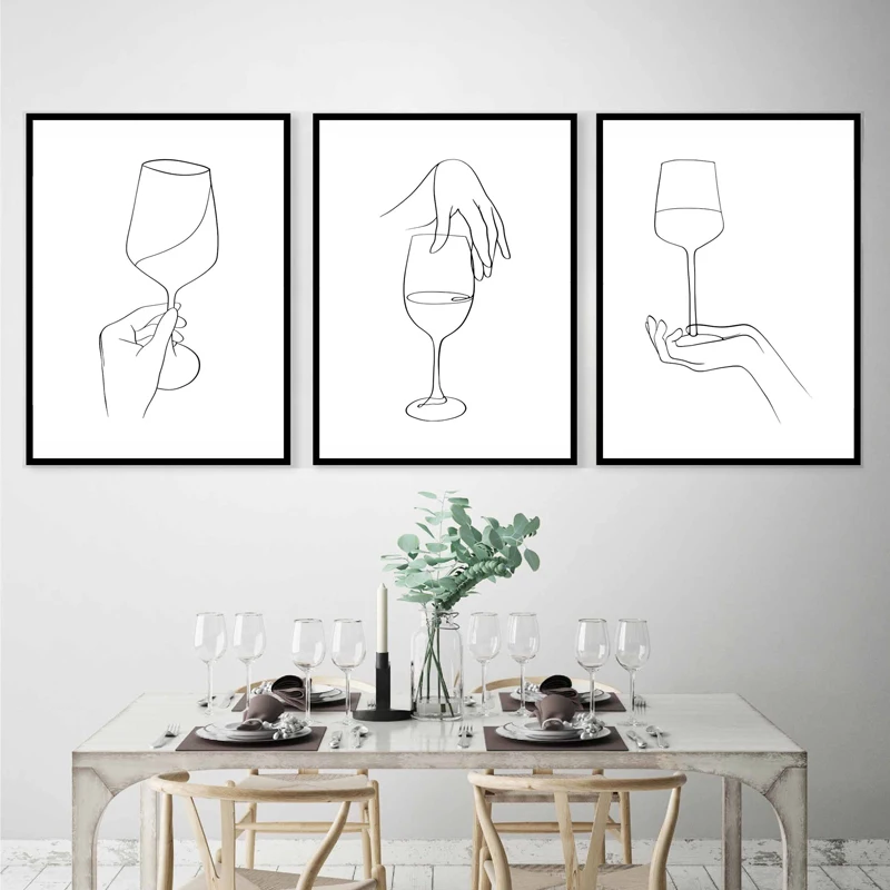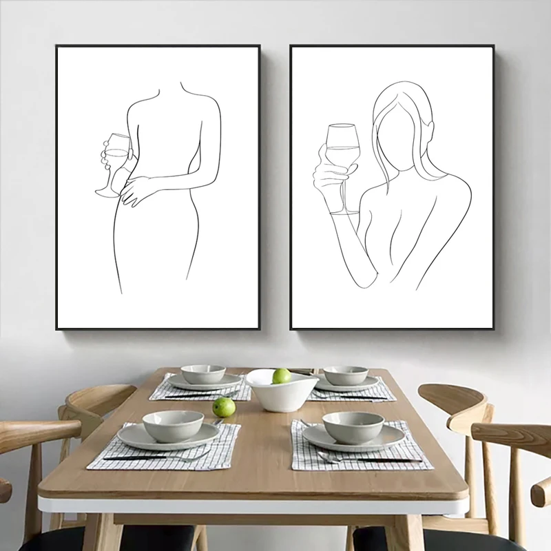 Винная линия Рисование художественный принт черно-белый абстрактный сексуальный женский винный любовник постер холст живопись вино подарок кухня Декор на стену