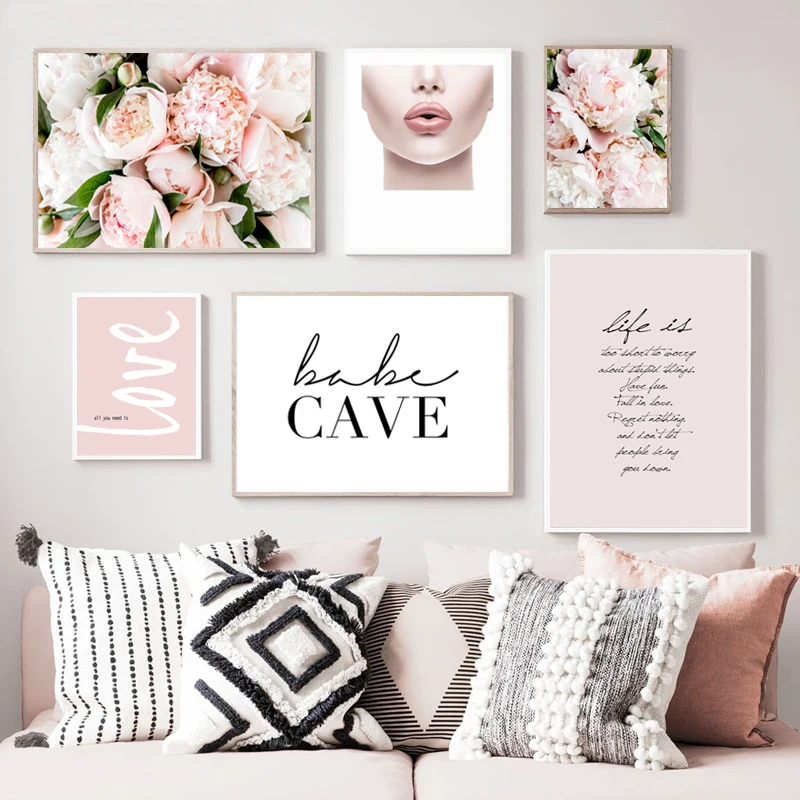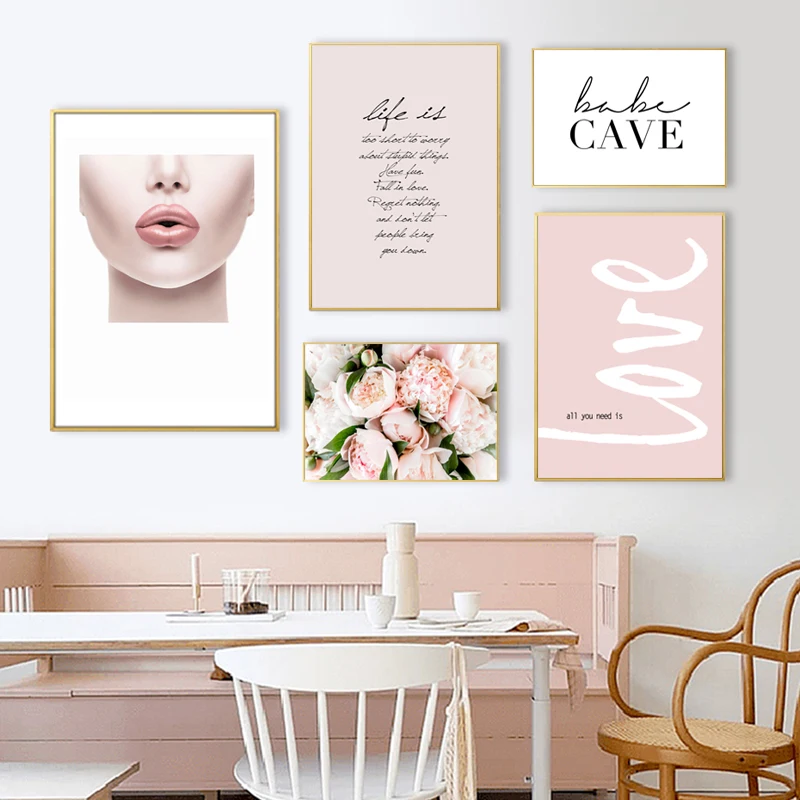 Галерея, настенные картины, розовые пионы, цветы, принты, современный модный плакат, Картина на холсте для девочек, картины, Женский Декор для комнаты