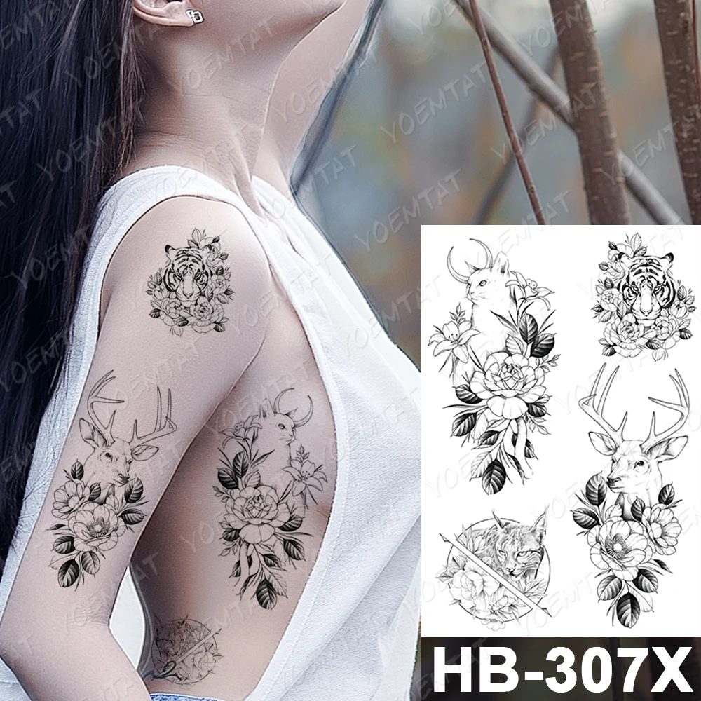 Водонепроницаемая Временная тату-наклейка линия лиса олень цветы флэш-татуировки лев кошка Тигр Змея волк боди арт рука поддельные татуировки для женщин
