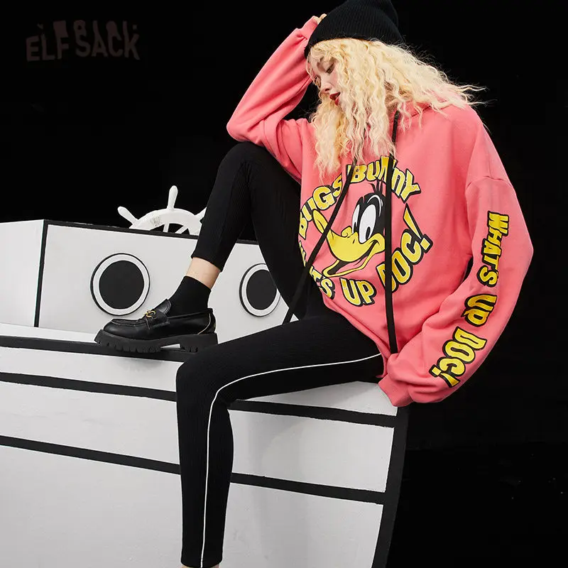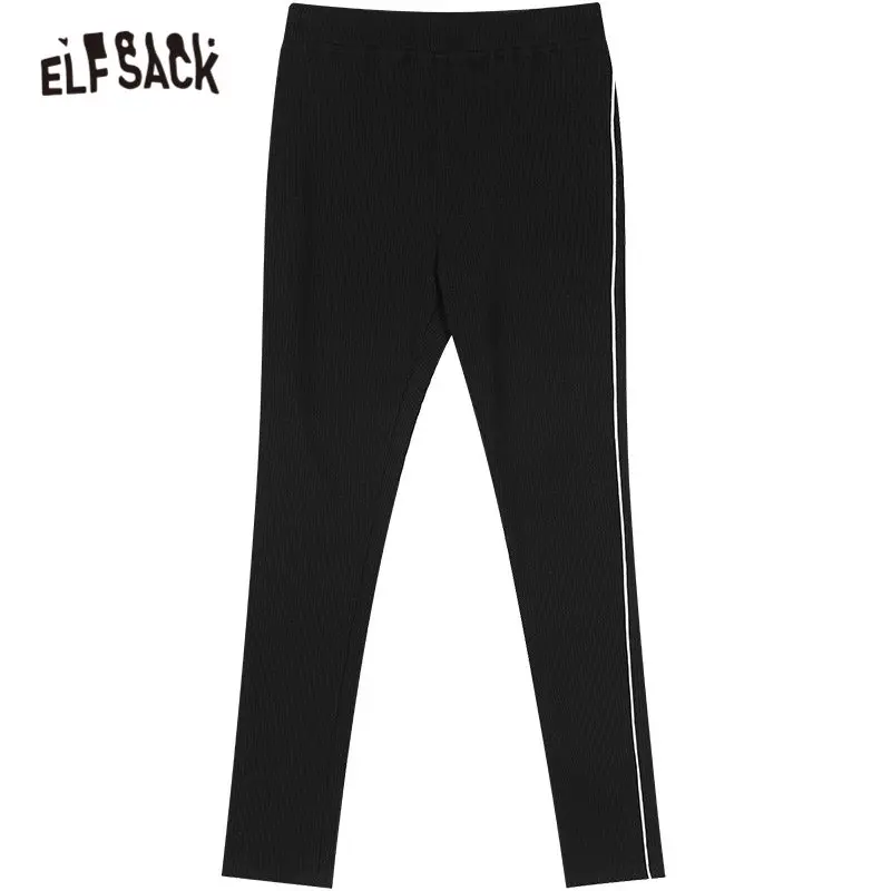 ELFSACKчерные однотонные минималистичные обтягивающие женские леггинсы, осенние корейские женские брюки с высокой талией и полосками эльфа 2020, базовые брюки на каждый день