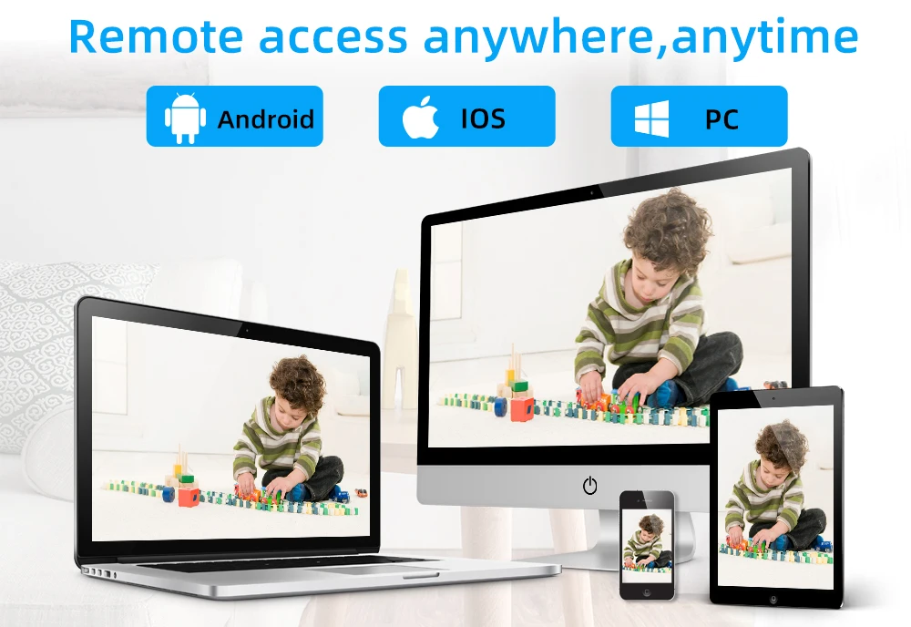 Просмотр видео в режиме реального времени с любого места и в любое время с помощью смартфона, стола или ПК с передовой технологией P2P,Вы можете получить удаленный доступ к вашей системе за считанные минуты или меньше, нет необходимости в переадресации, удаленный доступ никогда не был таким простым!
