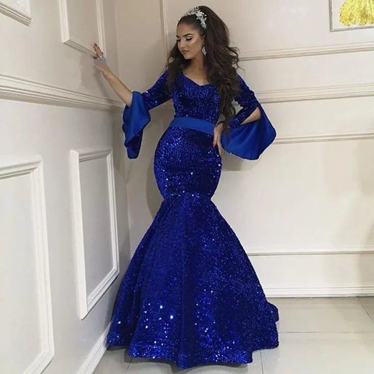 Женское вечернее платье-русалка, платье с длинным рукавом для выпускного вечера, официальное платье для торжества, 2019
