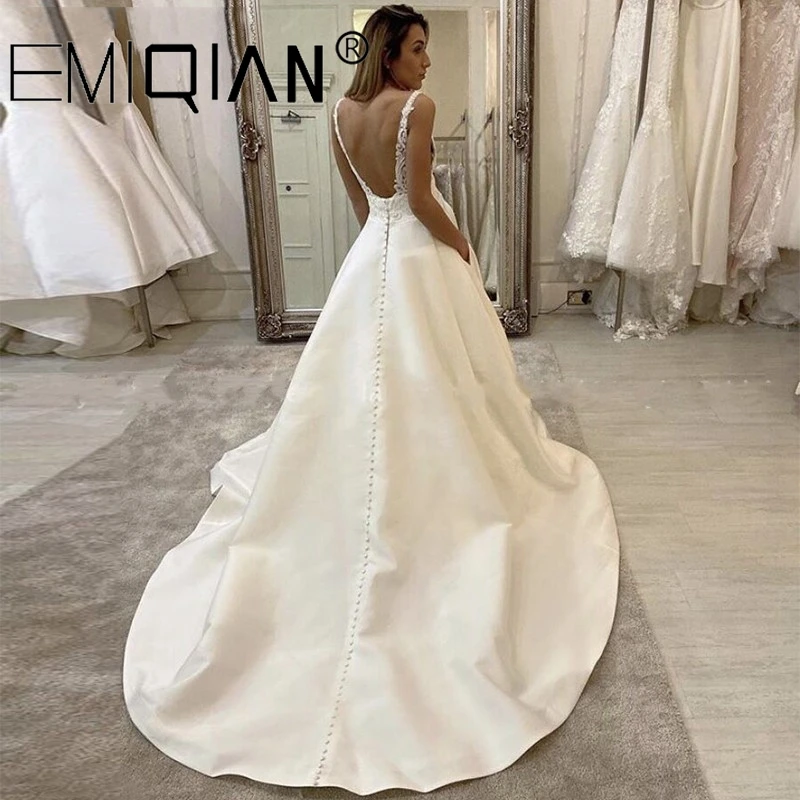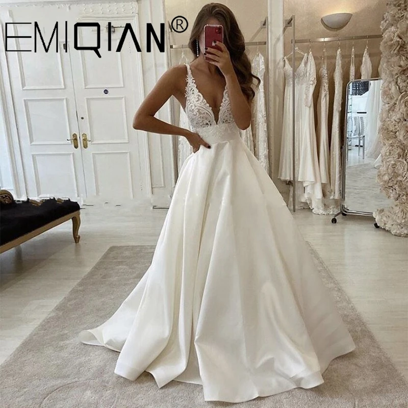 ТРАПЕЦИЕВИДНОЕ свадебное платье в стиле бохо с глубоким V-образным вырезом, с открытой спиной и шлейфом, популярные свадебные платья