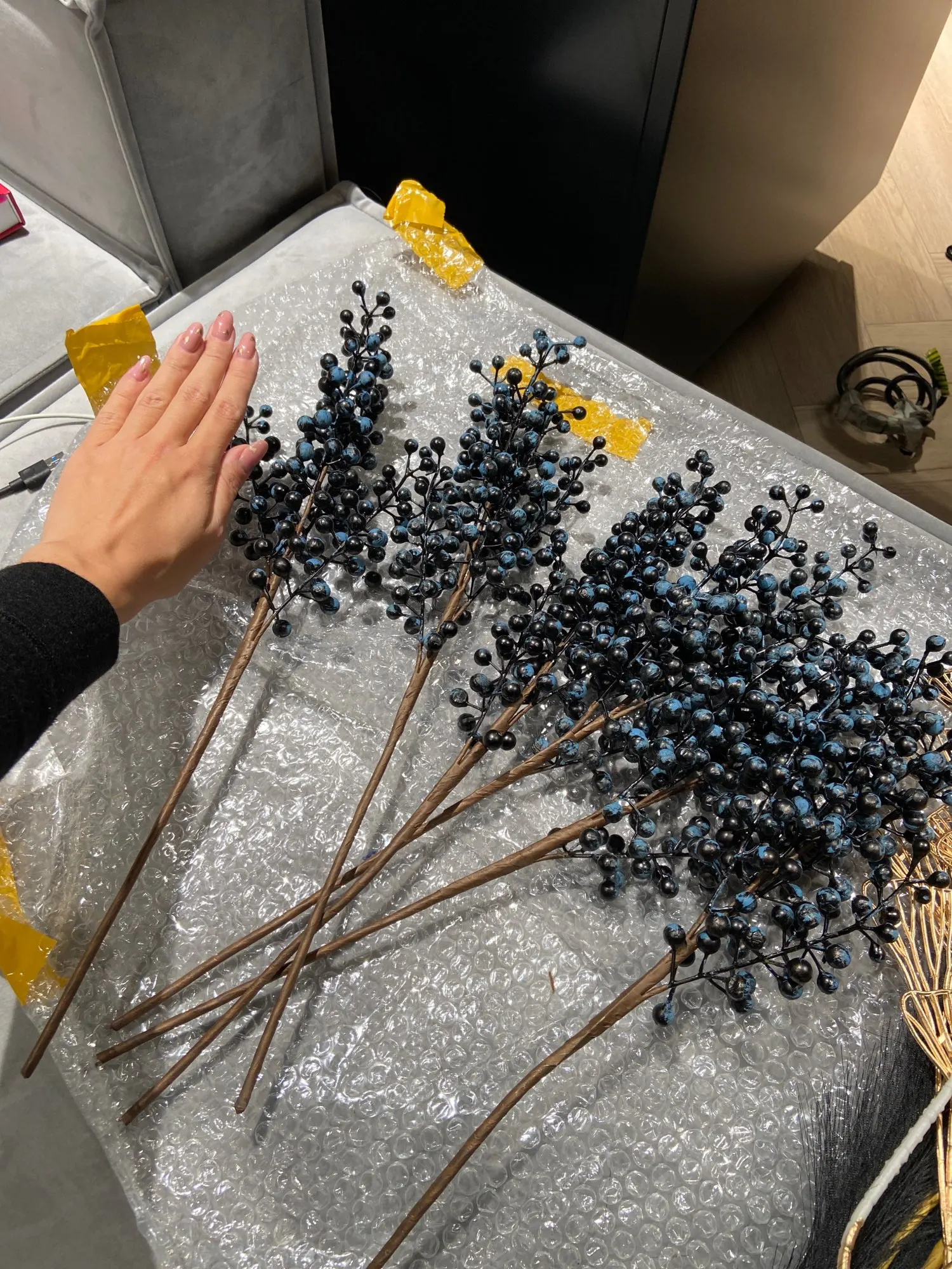 Искусственные ветки ягод из пены, букет цветов, гирлянда, аксессуары, синие ягоды, стебли, искусственные растения для дома, Рождественское украшение