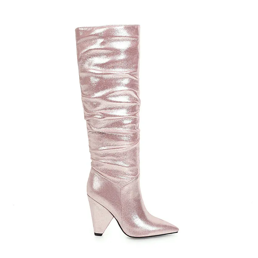 ESVEVA2021 г. Сапоги до колена из PU искусственной кожи с острым носком в западном стиле на молнии на высоком каблуке-шпильке женские сапоги на платформе размеры 34-43