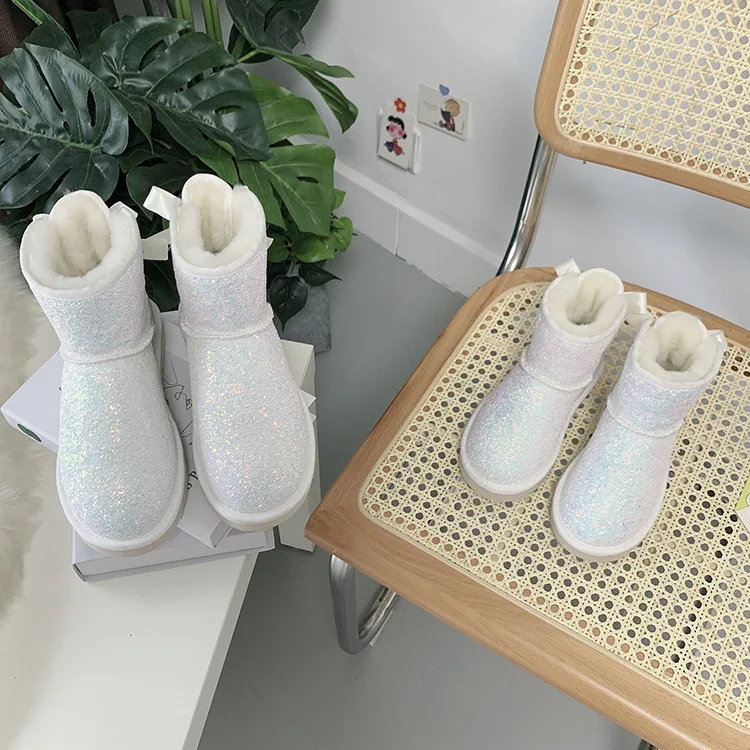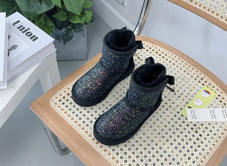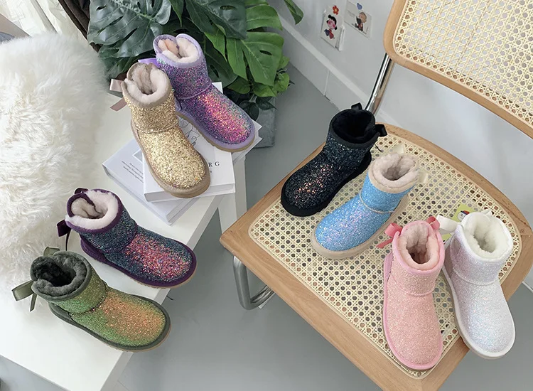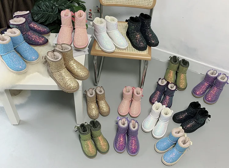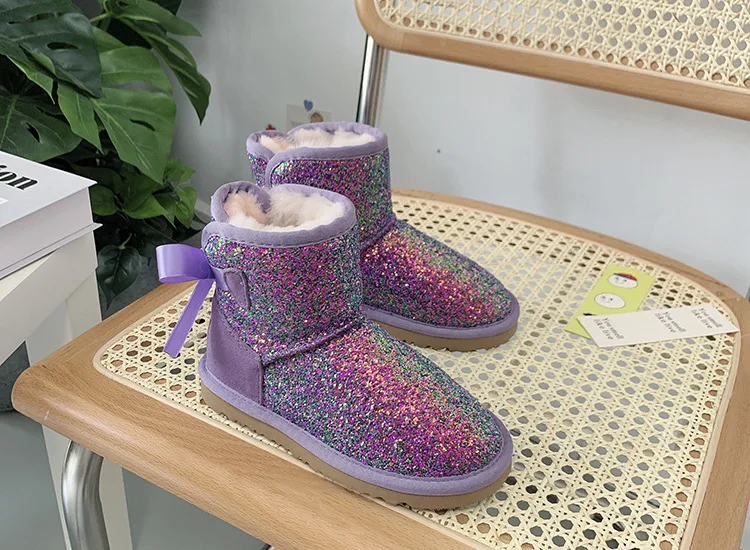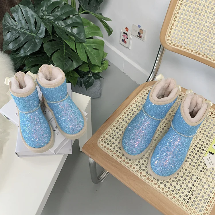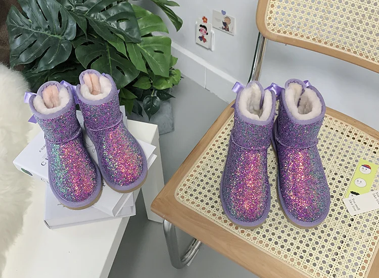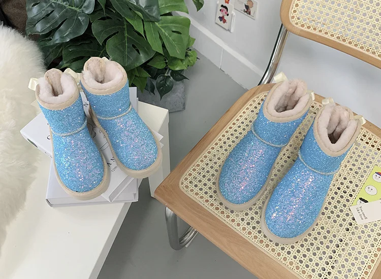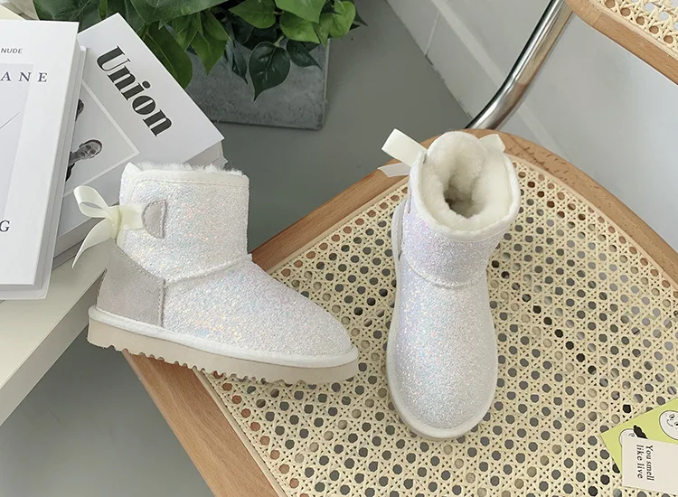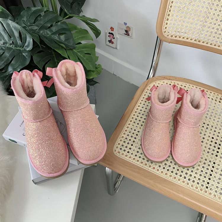 Ботинки для девочек, зимние, с бантом, теплые, с блестками