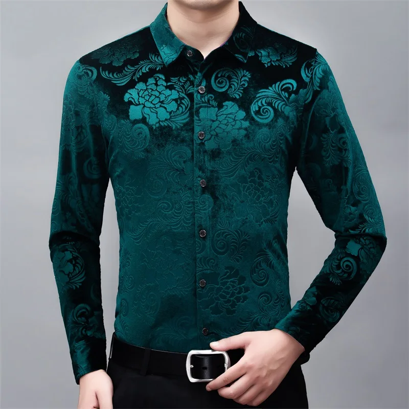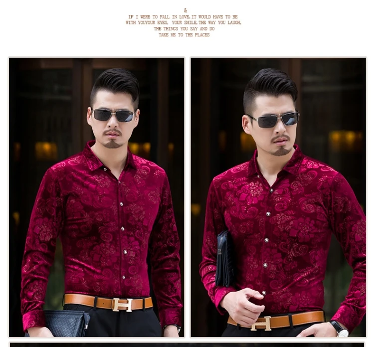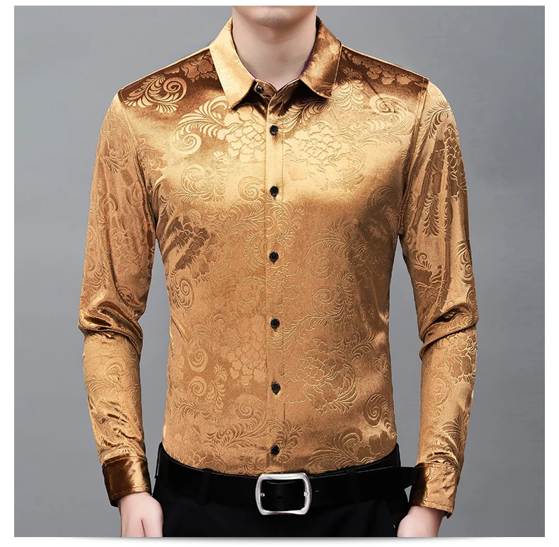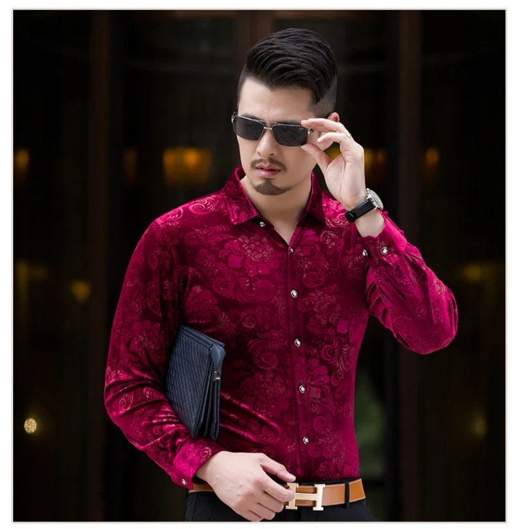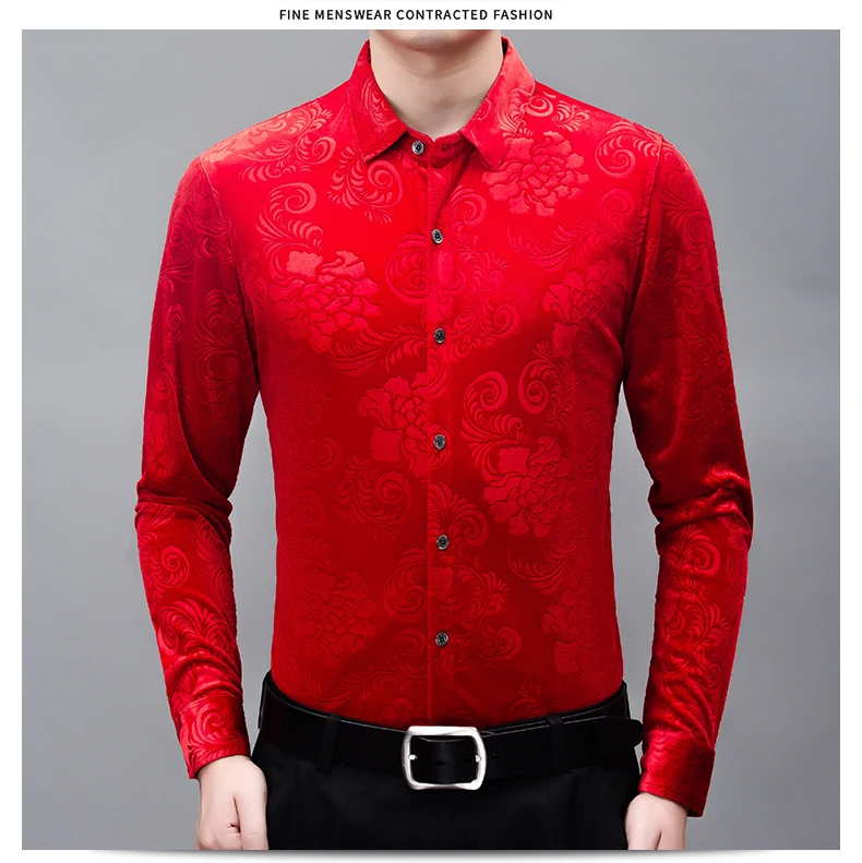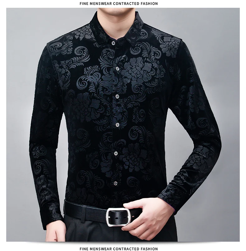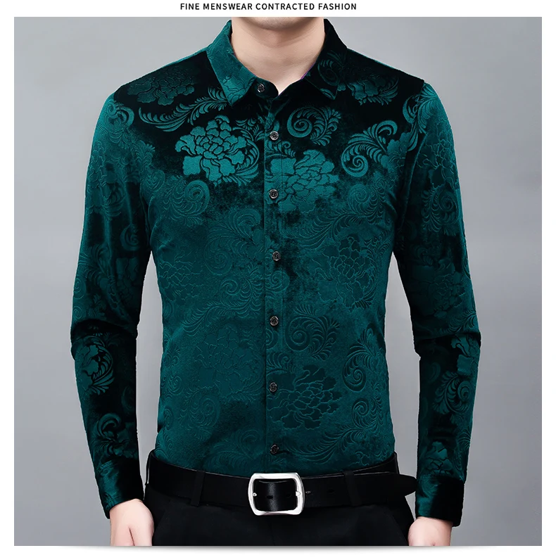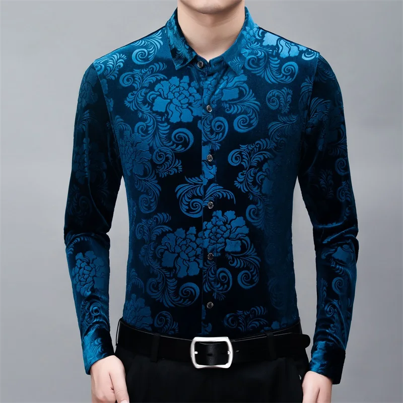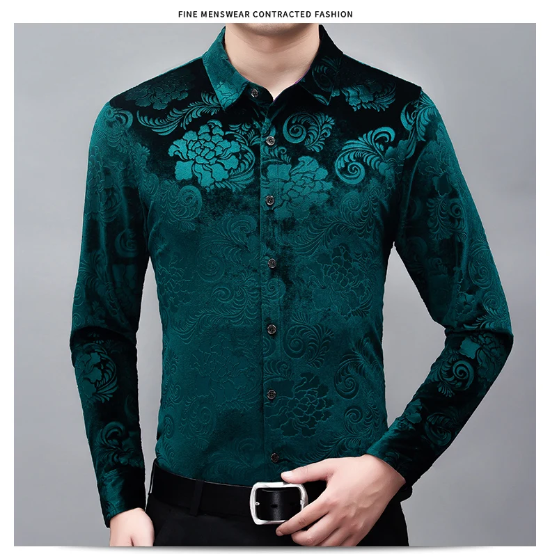 Новинка 2021, Мужская бархатная одежда, весенние и осенние платья с цветочным принтом, мужские велюровые рубашки с длинным рукавом