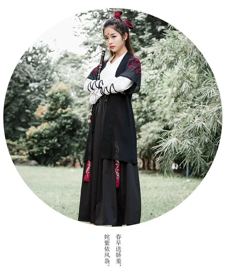 XinHuaEase платье ханьфу женский китайский национальный народный танцевальный костюм традиционный Восточный Костюм фехтовальщика косплей одежда черный