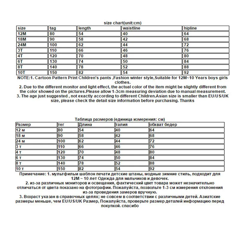 Примечание: 1. Детские штаны с мультяшным принтом; Модный зимний стиль; Одежда для мальчиков и девочек 12 мес.-10 лет.