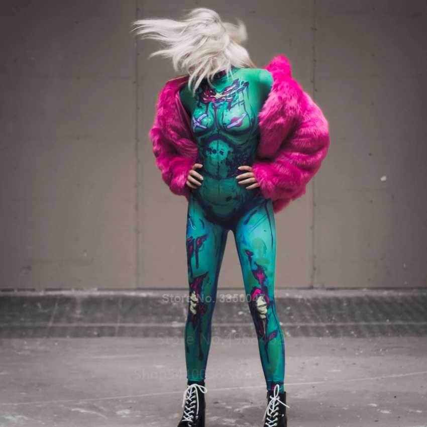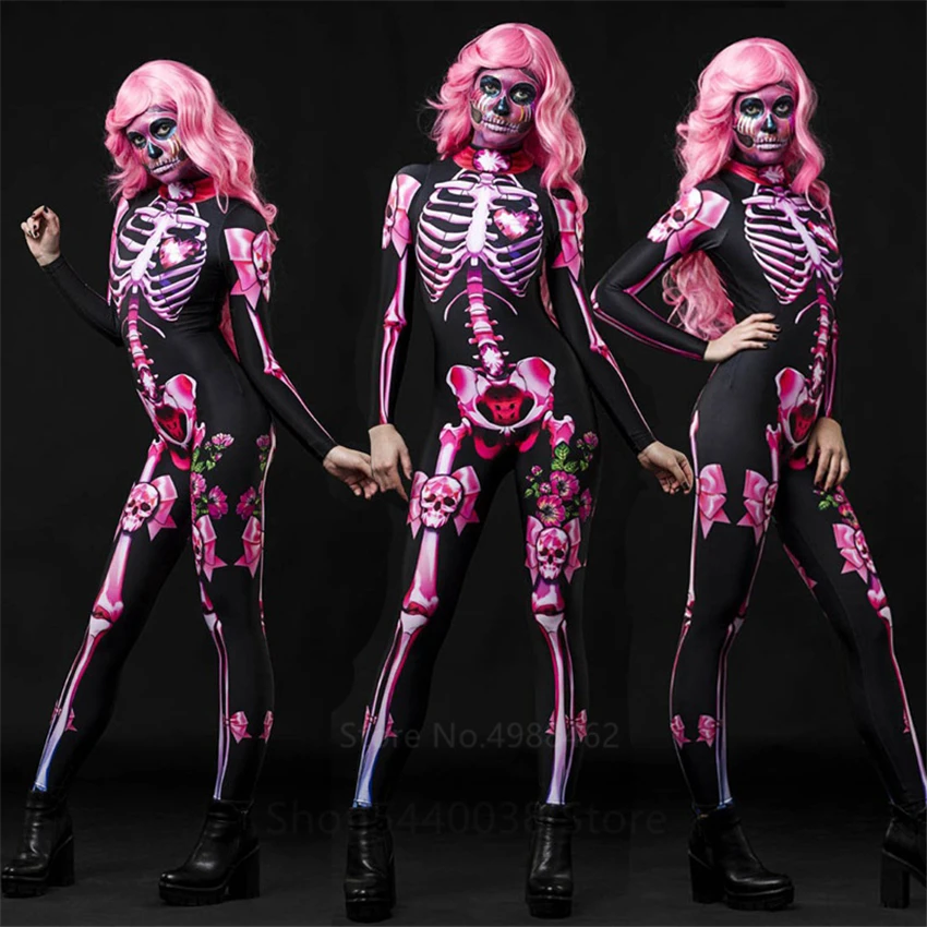 Женские костюмы на Хэллоуин, страшный комбинезон для косплея вампира, Женский страшный скелет, яркий эластичный наряд для карнавала Вечерние