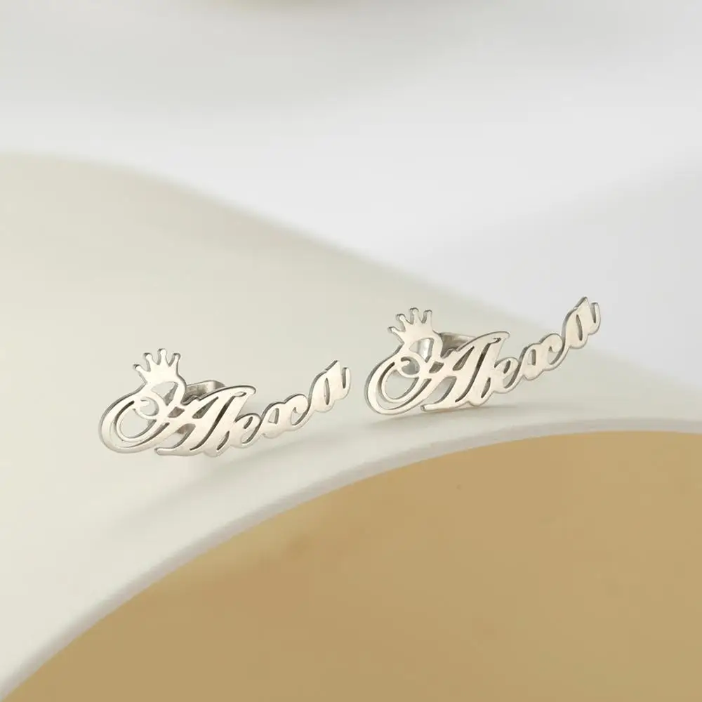 Skyrim индивидуальные серьги из нержавеющей стали с индивидуальным именем и буквенным принтом, серьги-гвоздики на заказ для свадебной вечеринки, ювелирные изделия для женщин и девочек