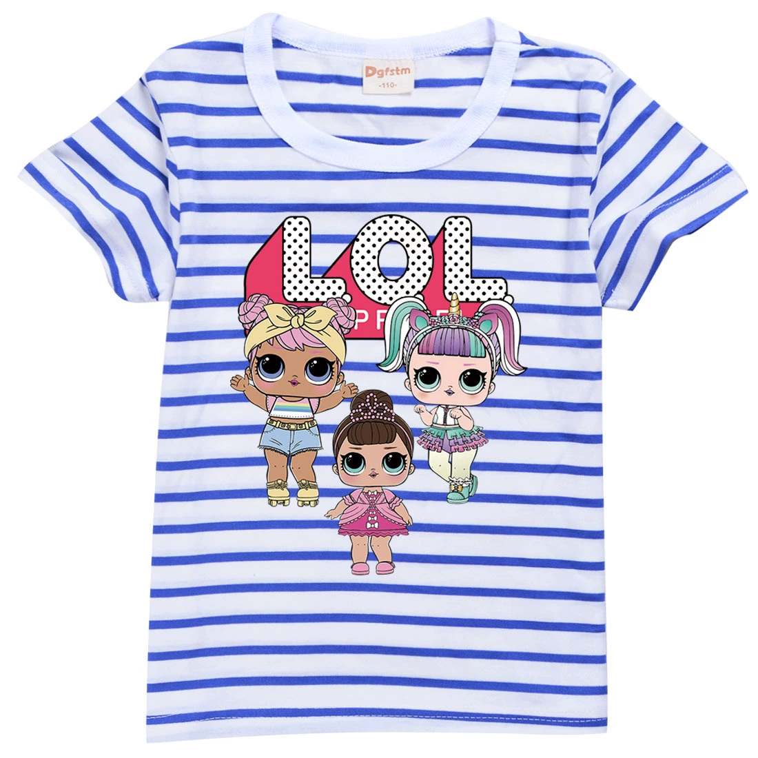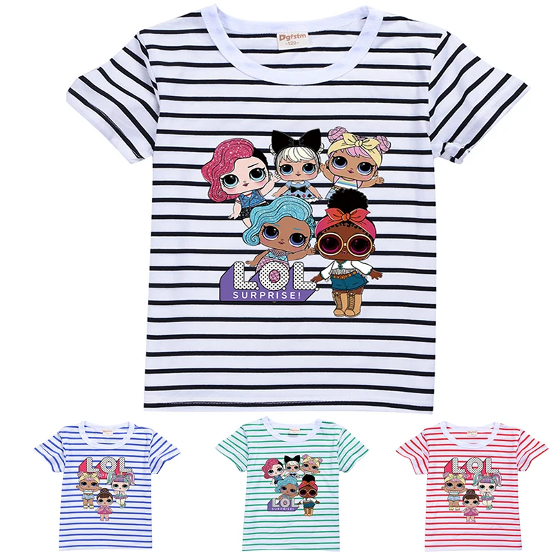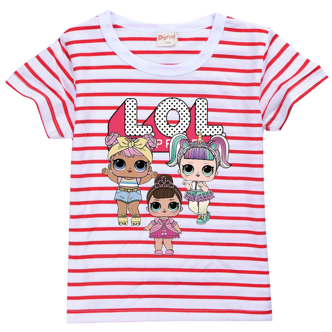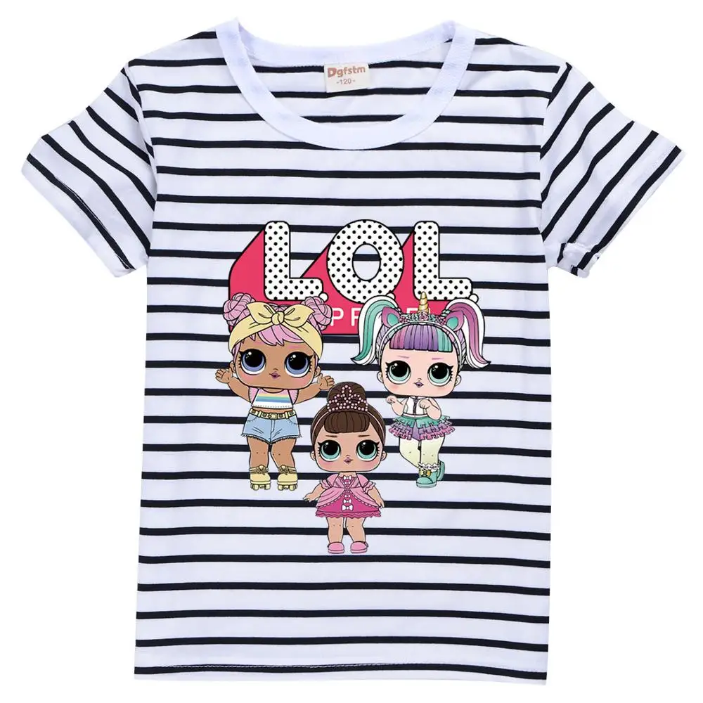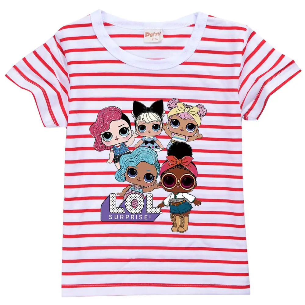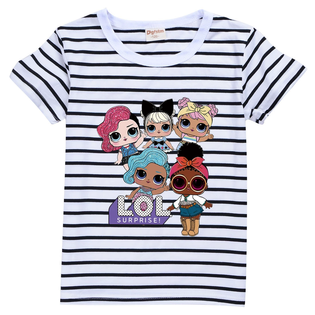 LoL SurpriseЛетняя хлопковая футболка в полоску для маленьких девочек, топы с короткими рукавами и рисунком куклы, модная одежда для маленьких детей